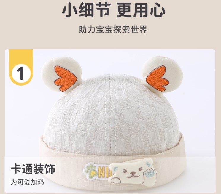 婴儿帽子春季新款男宝宝瓜皮地主帽可爱棉春秋薄款女儿童海盗帽