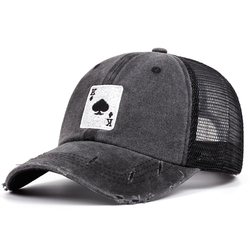 扑克牌图案黑桃K创意趣味帽子棒球帽男女小清新水洗马尾棒球帽