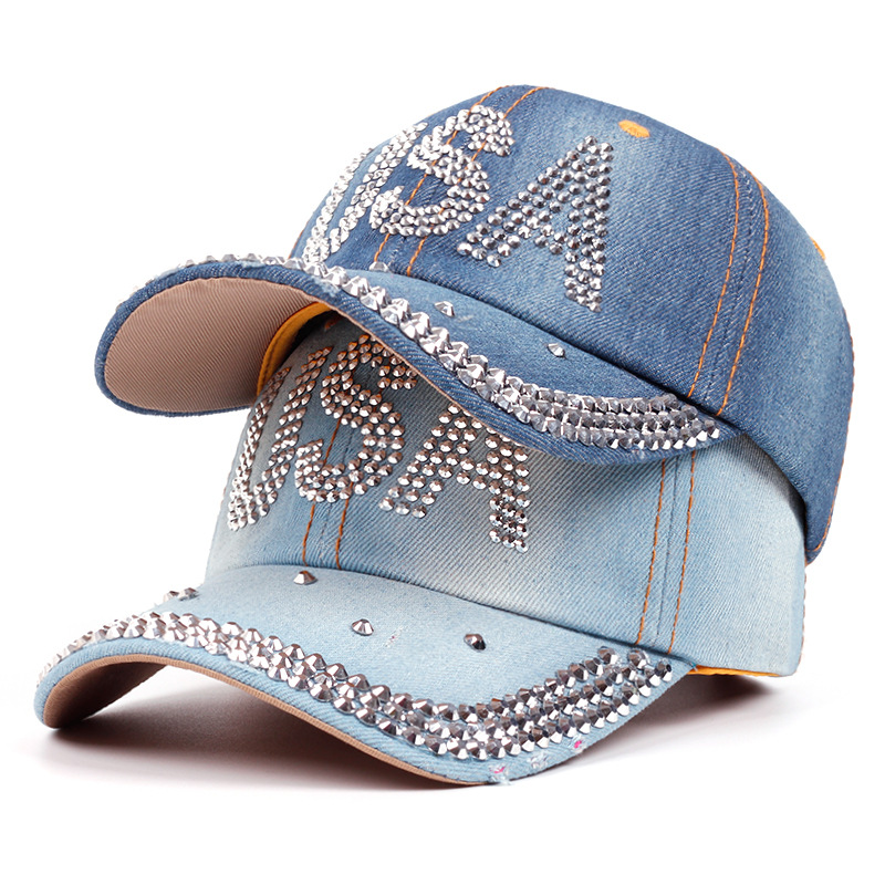跨境男女款ins风棒球帽 镶钻USA字母搭配金属铆钉 鸭舌帽度假旅行
