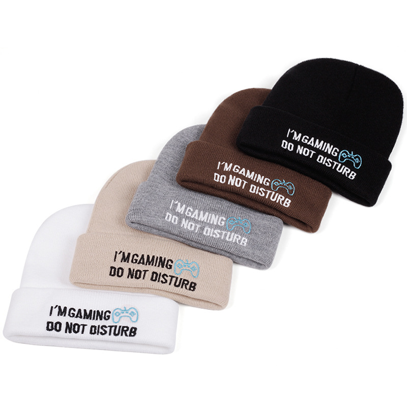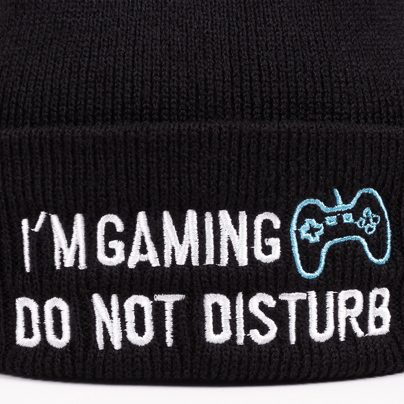 跨境亚马逊Do not disturb游戏机刺绣针织帽冬季毛线帽子