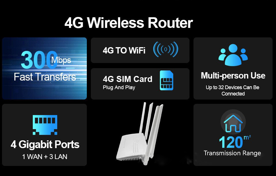 4G Wifi 300Mbps路由器插卡热点无线局域网带4个高增益天线强信号