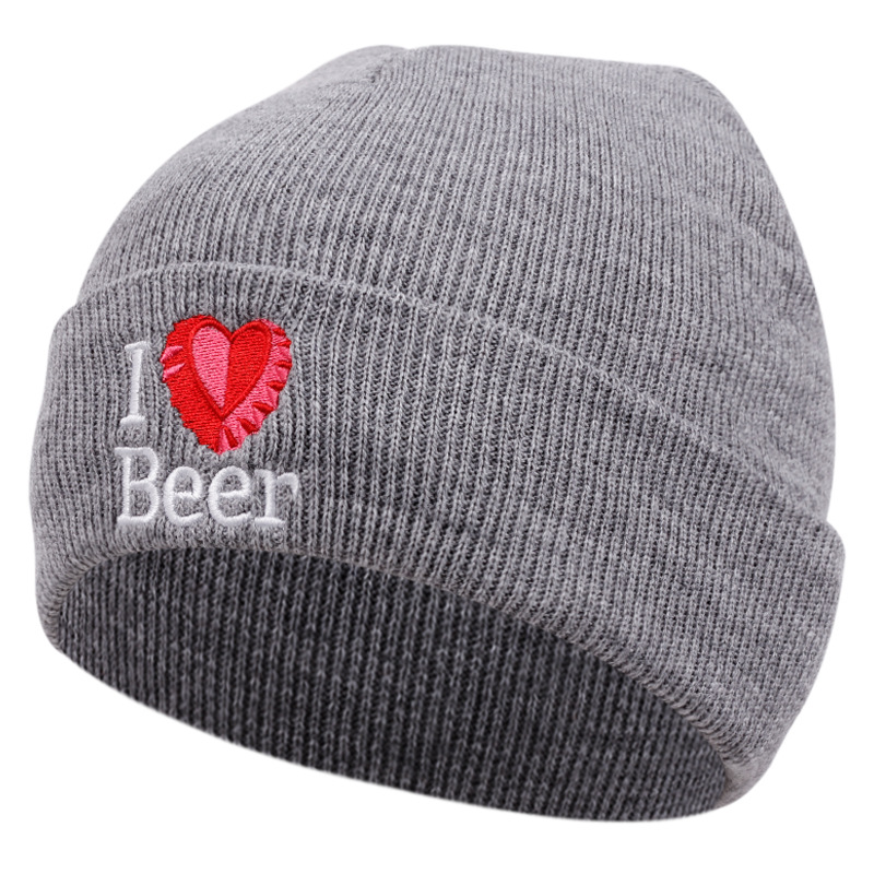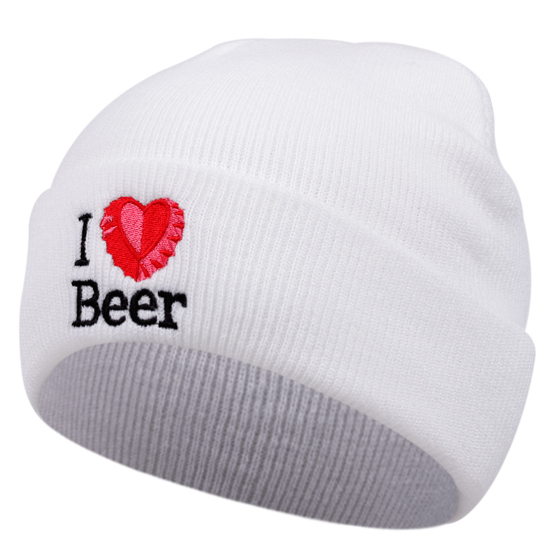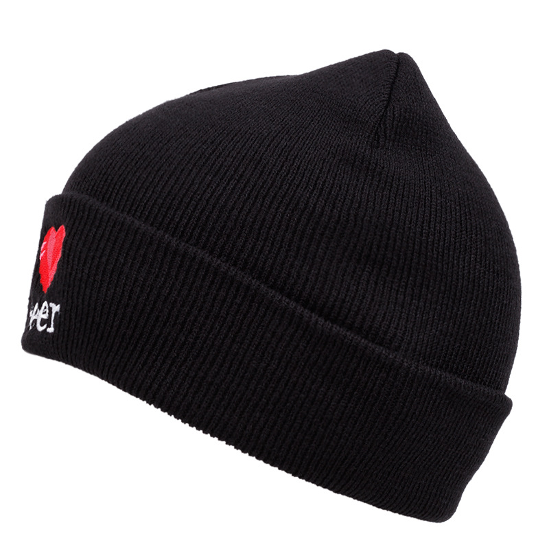 跨境新款秋冬欧美刺绣爱心字母毛线帽男女户外百搭套头滑雪冷帽