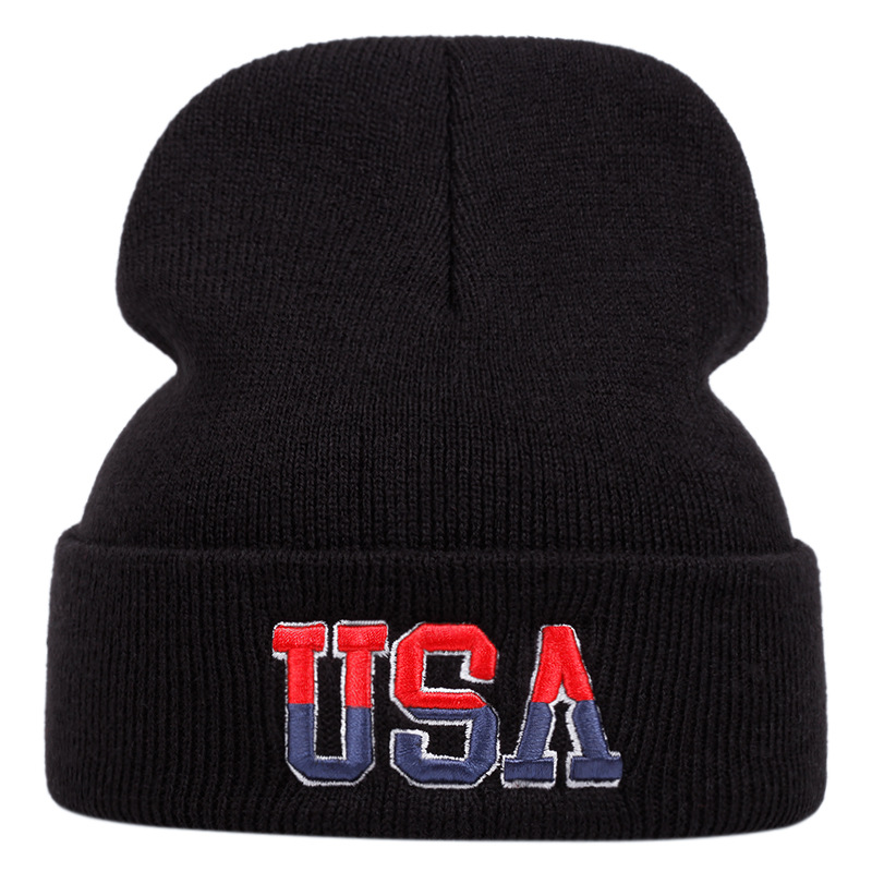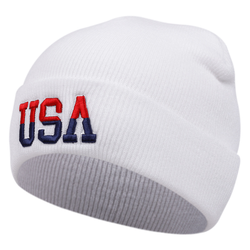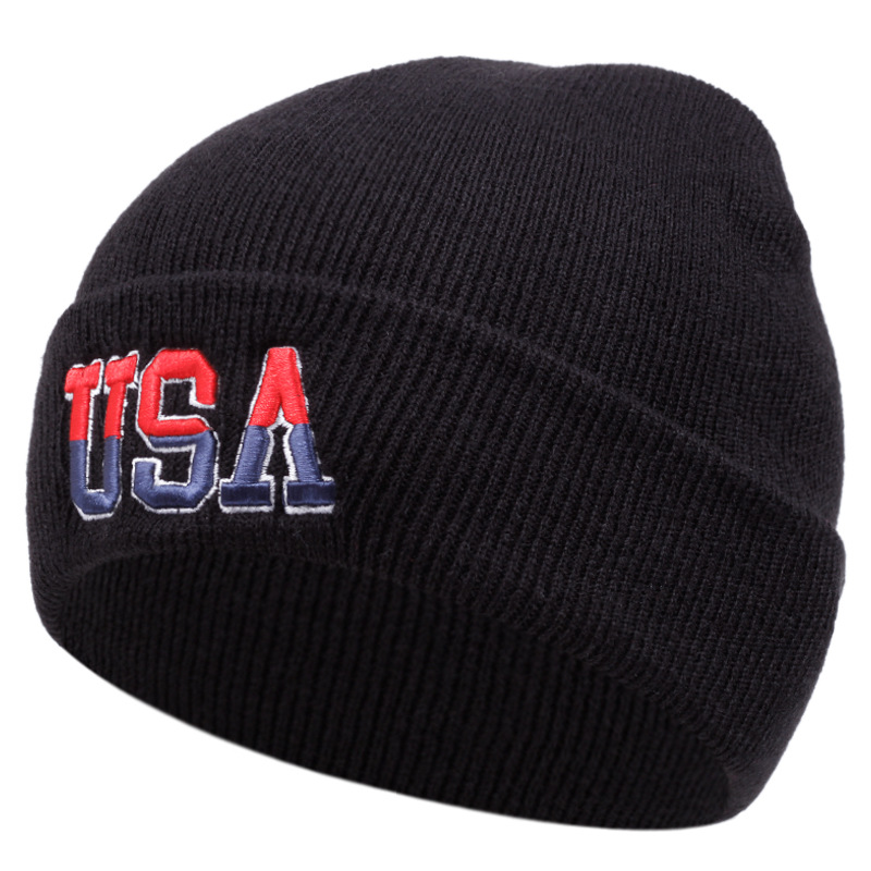帽子男外贸爆款USA针织毛线帽秋冬滑雪帽豆豆帽冷帽