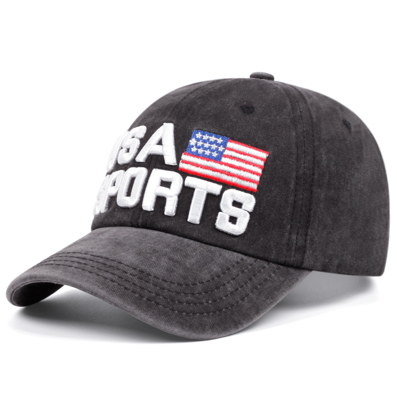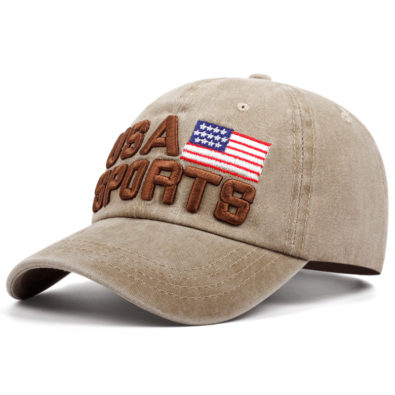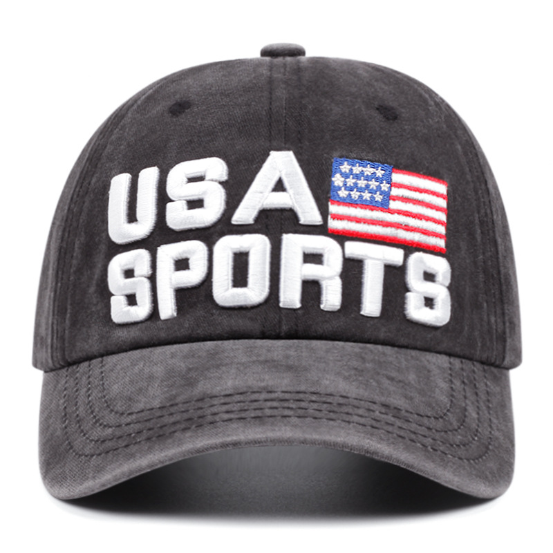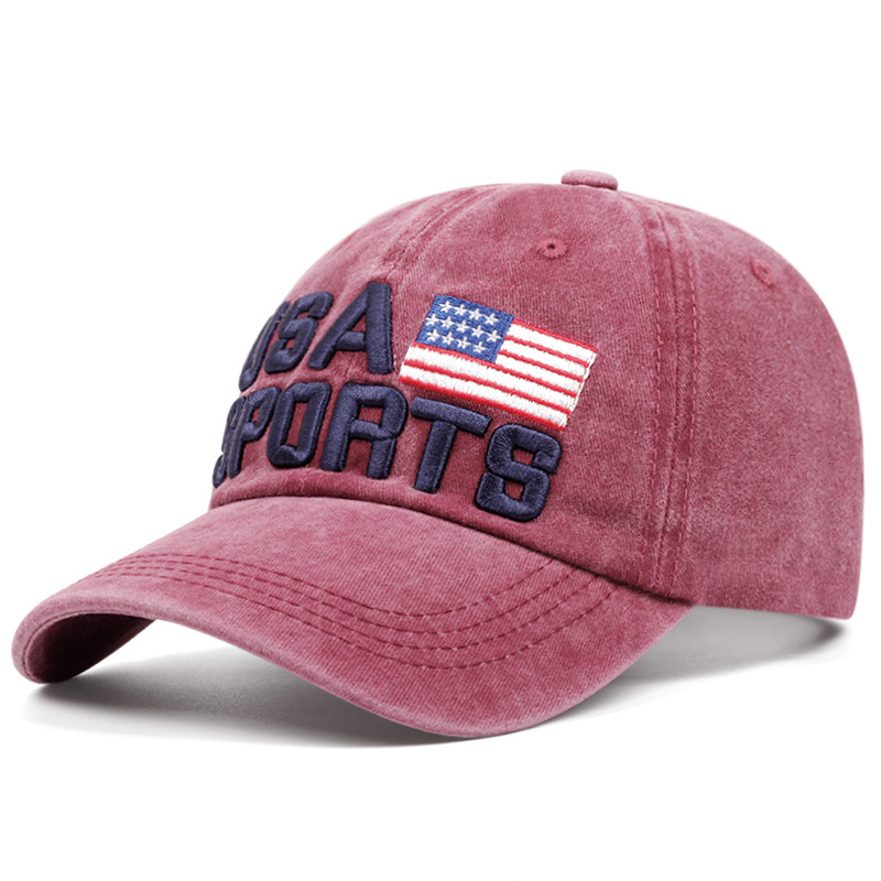 新款刺绣USA棒球帽水洗绣花大字母运动棒球帽外贸美国国旗鸭舌帽