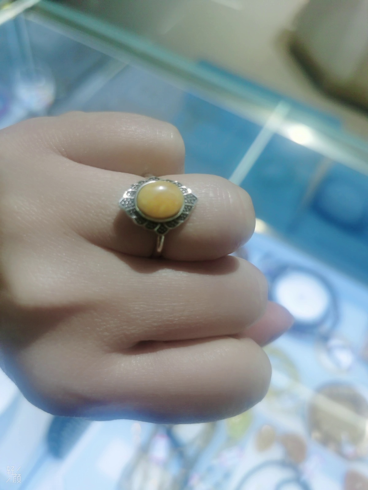 俄罗斯天然蜜蜡戒指镶嵌天银,漂亮