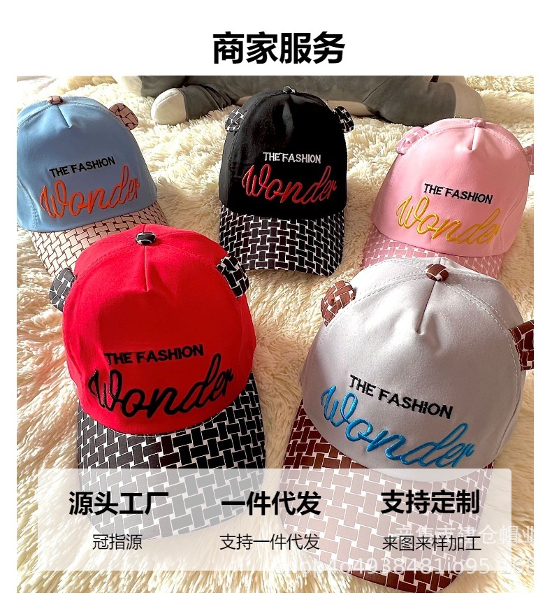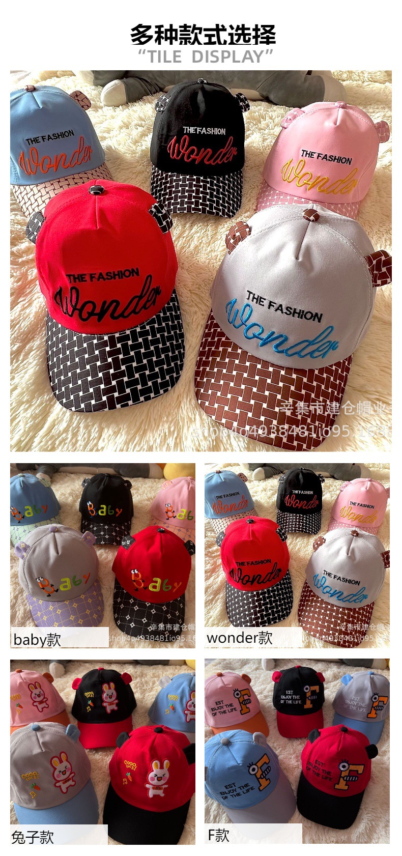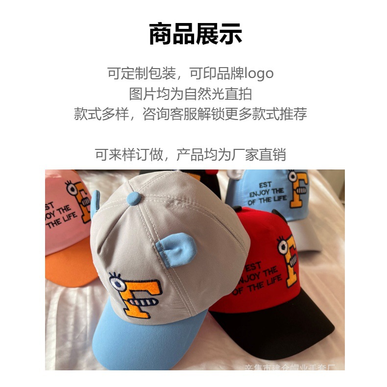 男女童春秋卡通短檐童帽圆顶防晒棒球帽宝宝卡通休闲字母刺绣户外