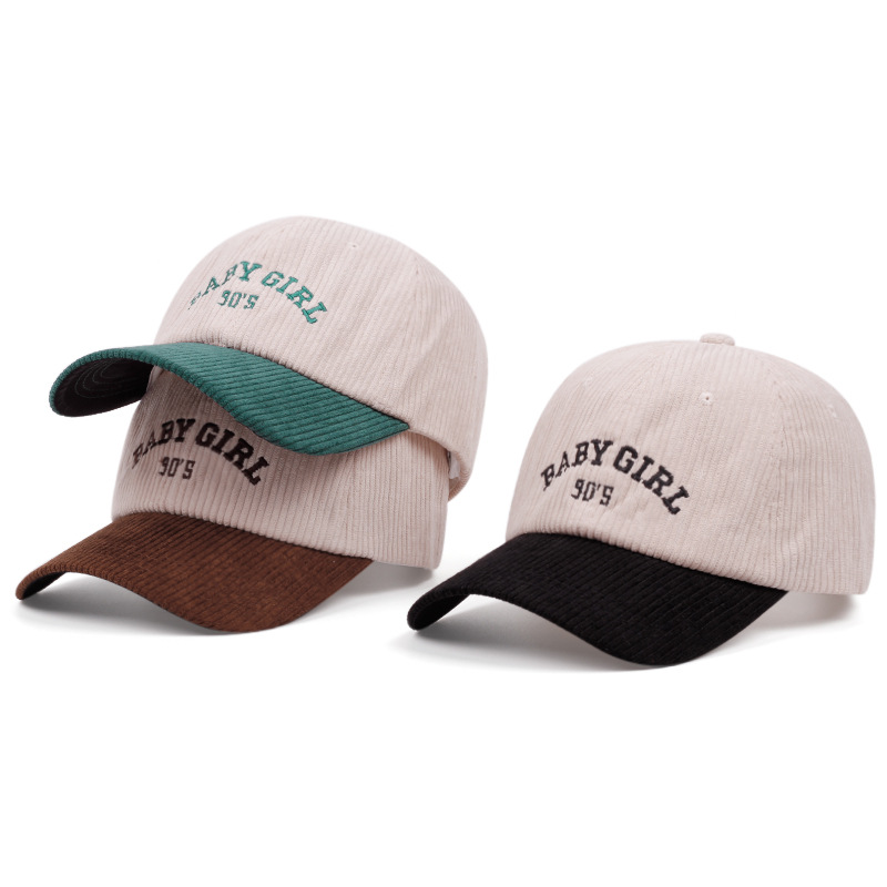 春季新款灯芯绒拼色棒球帽跨境热卖款字母刺绣鸭舌帽男女棒球帽
