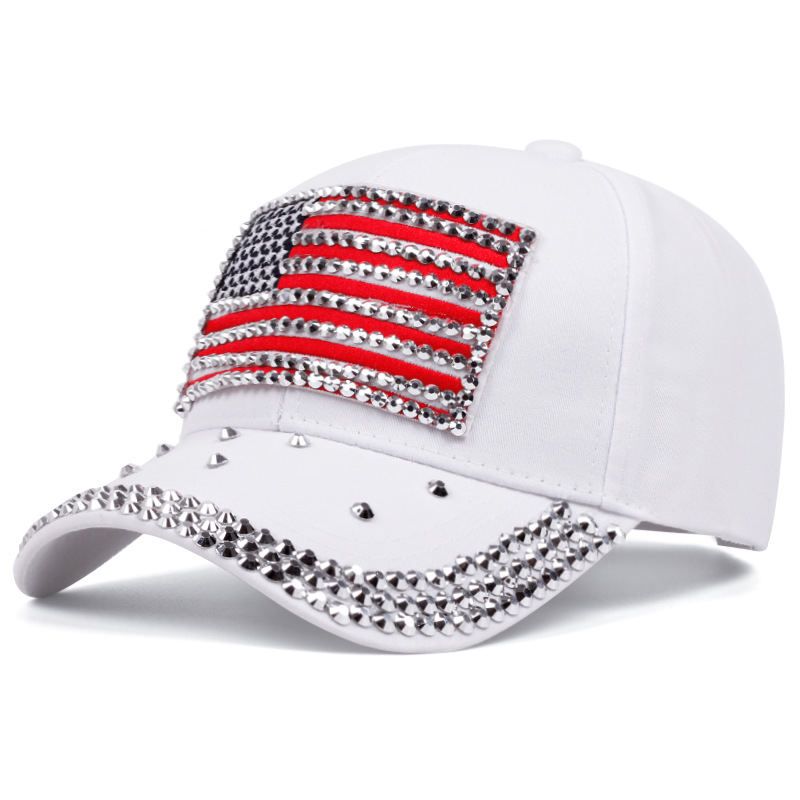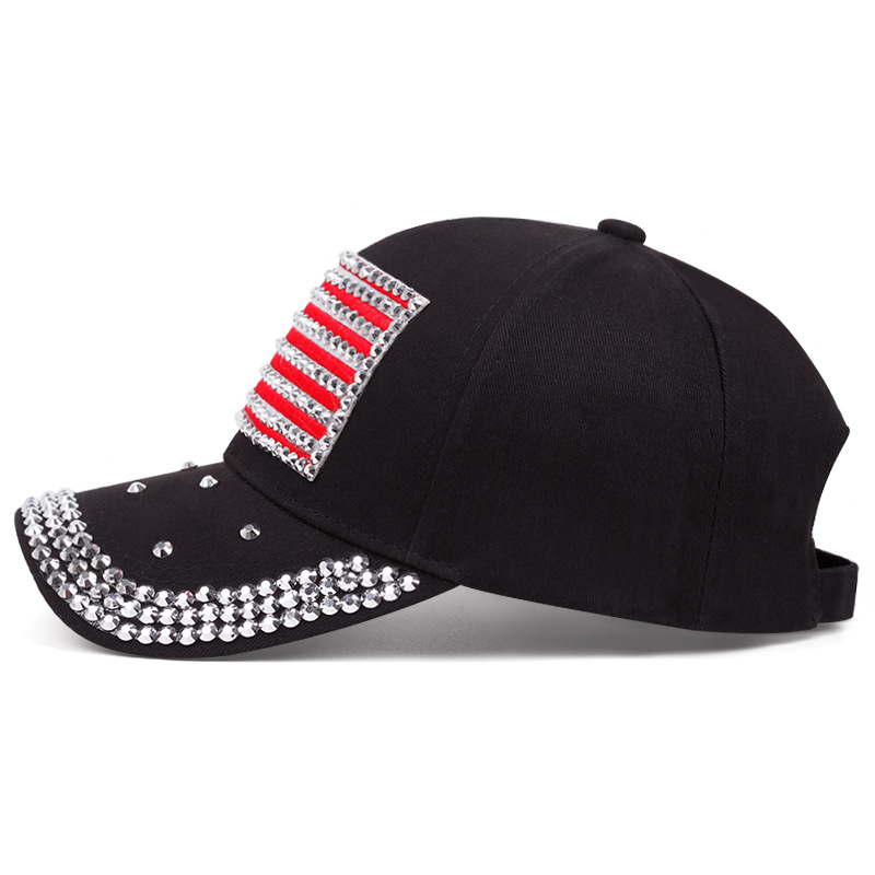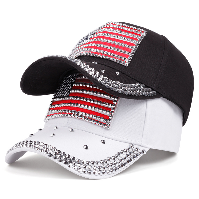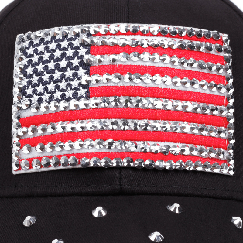 新款五角星点钻USA休闲鸭舌帽显脸小帽子欧美跨境美国国旗棒球帽