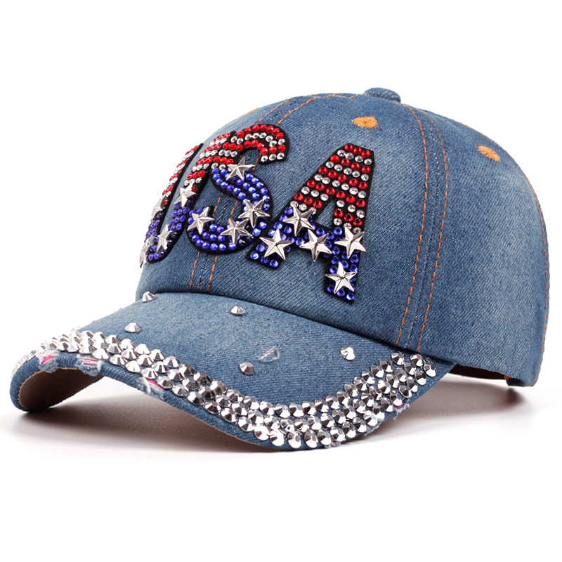 秋冬新款韩版潮新款美国镶钻牛仔棒球水洗夏户外太阳帽鸭舌帽