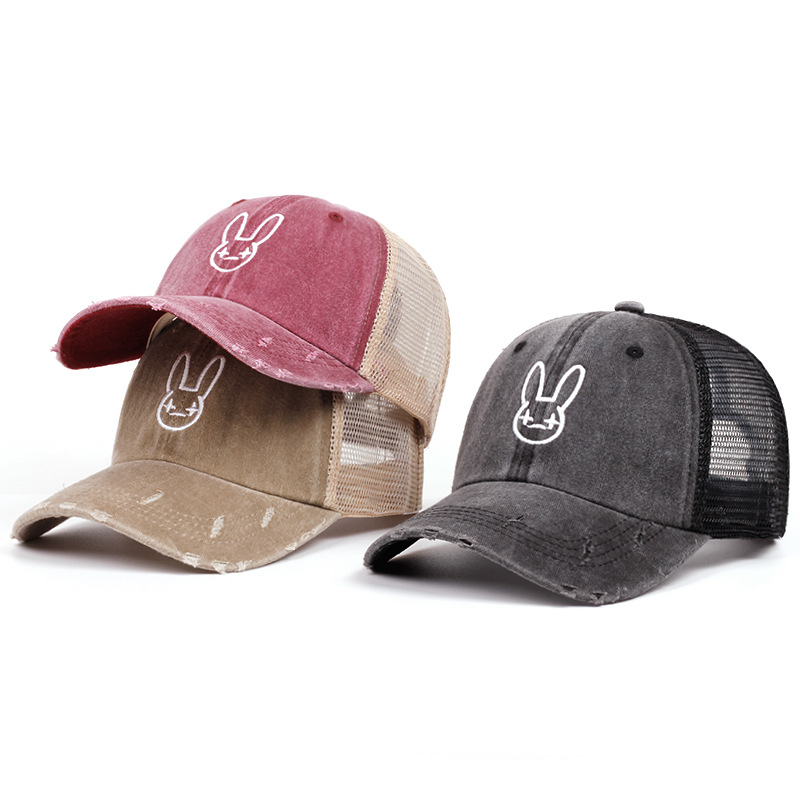 外贸新款爱坏兔子棒球帽跨境个性水洗棉质鸭舌帽毛边遮阳网帽