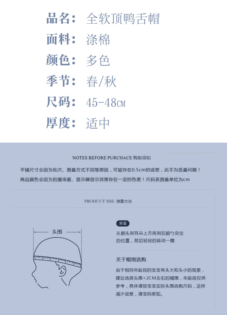 | 帽围48cm(参考5个月-3岁)帽围48cm(参考5个月-3岁) | USD $0.0 | 9817 piece available |