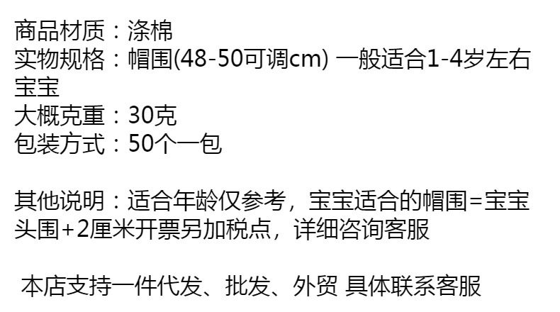 | 帽围48cm(参考5个月-3岁)帽围48cm(参考5个月-3岁) | USD $0.0 | 9939 piece available |