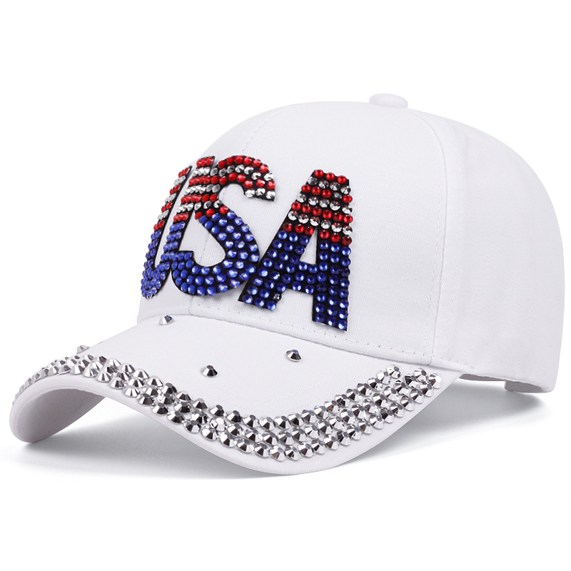 新款镶钻美国USA棒球帽水钻鸭舌帽防晒跨境遮阳个性跨境帽子
