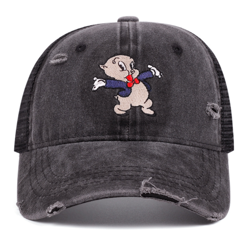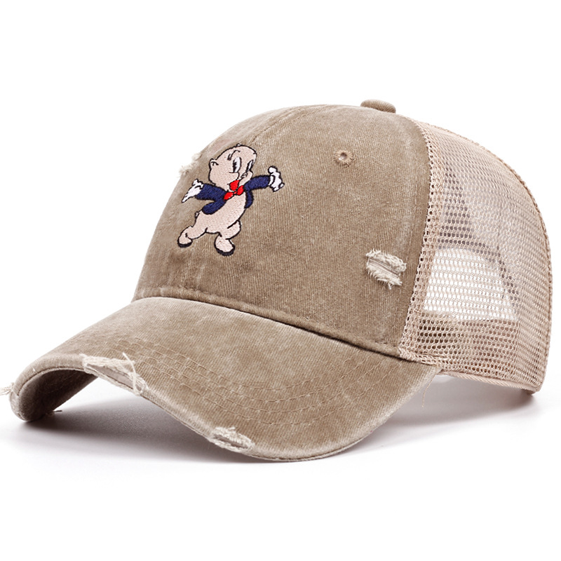 跨境新款网眼棒球帽 水洗猪小弟复古刺绣鸭舌帽 夏季户外遮阳