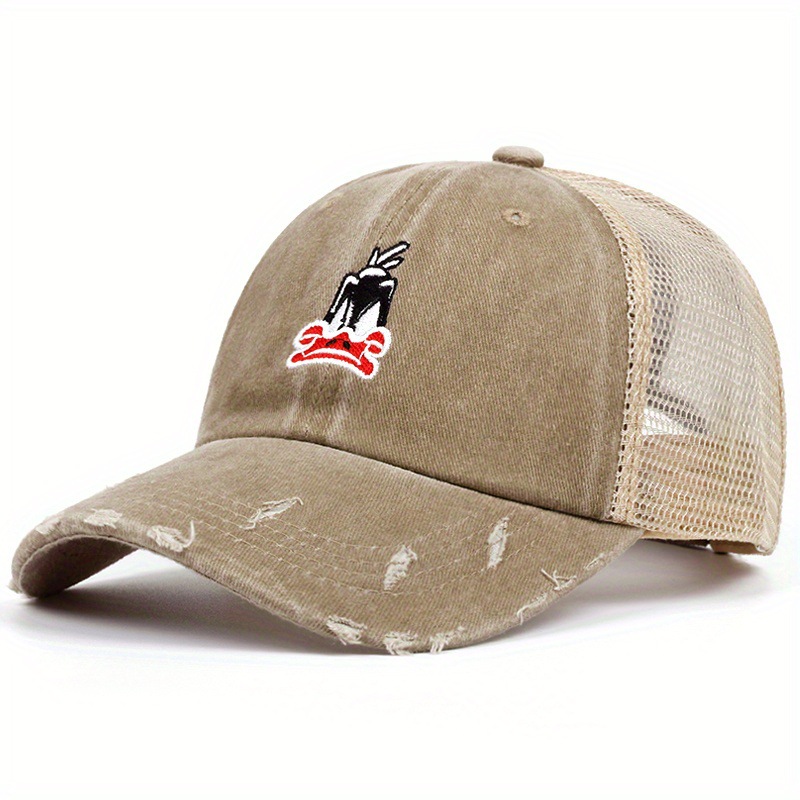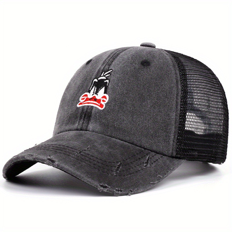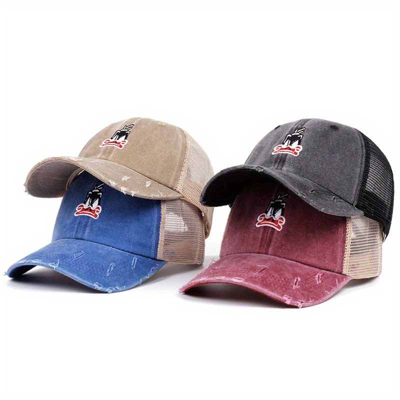 厂家批发新款卡通可达鸭做旧网状棒球帽子四季百搭遮阳帽鸭舌帽休