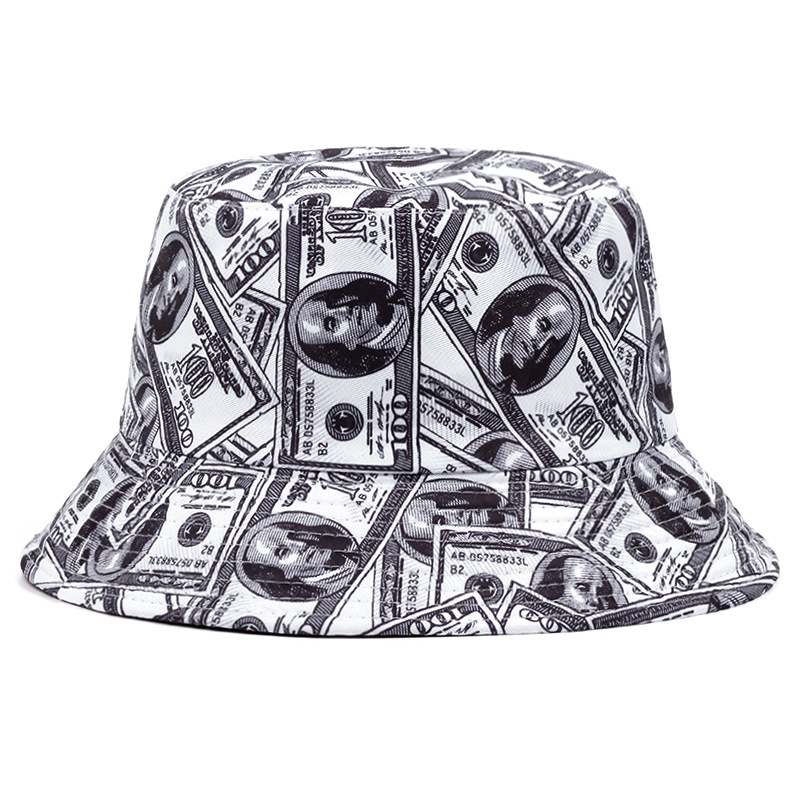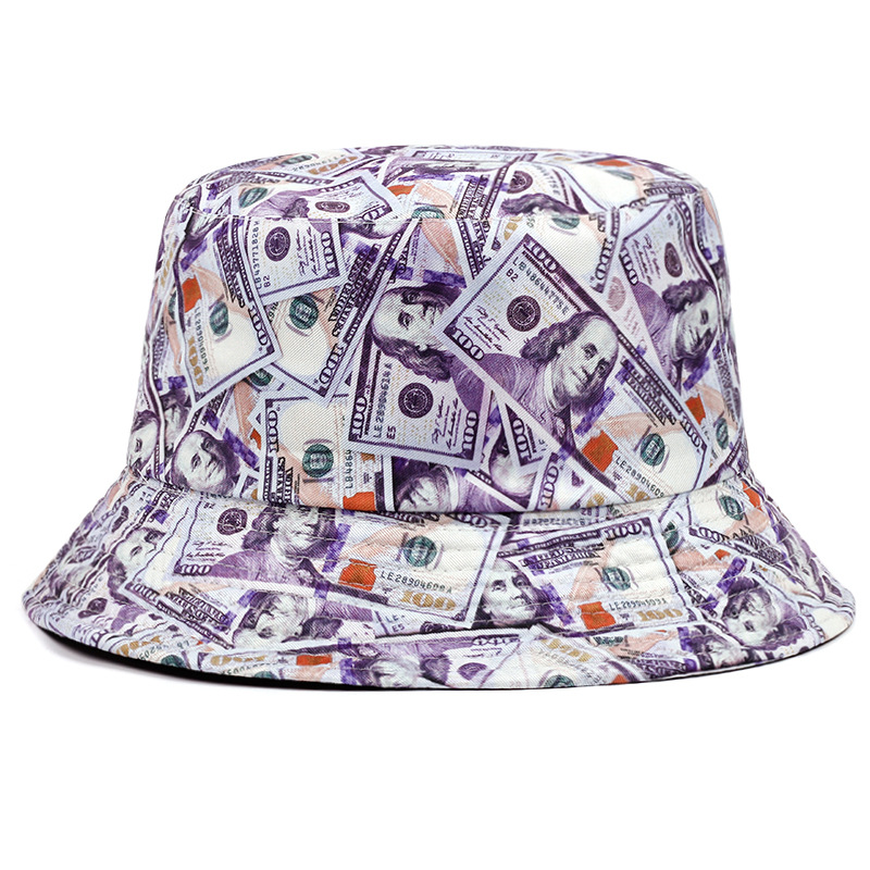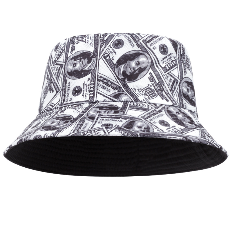 新款夏季时尚钞票印花渔夫帽男女户外百搭太阳帽潮流时尚运动帽