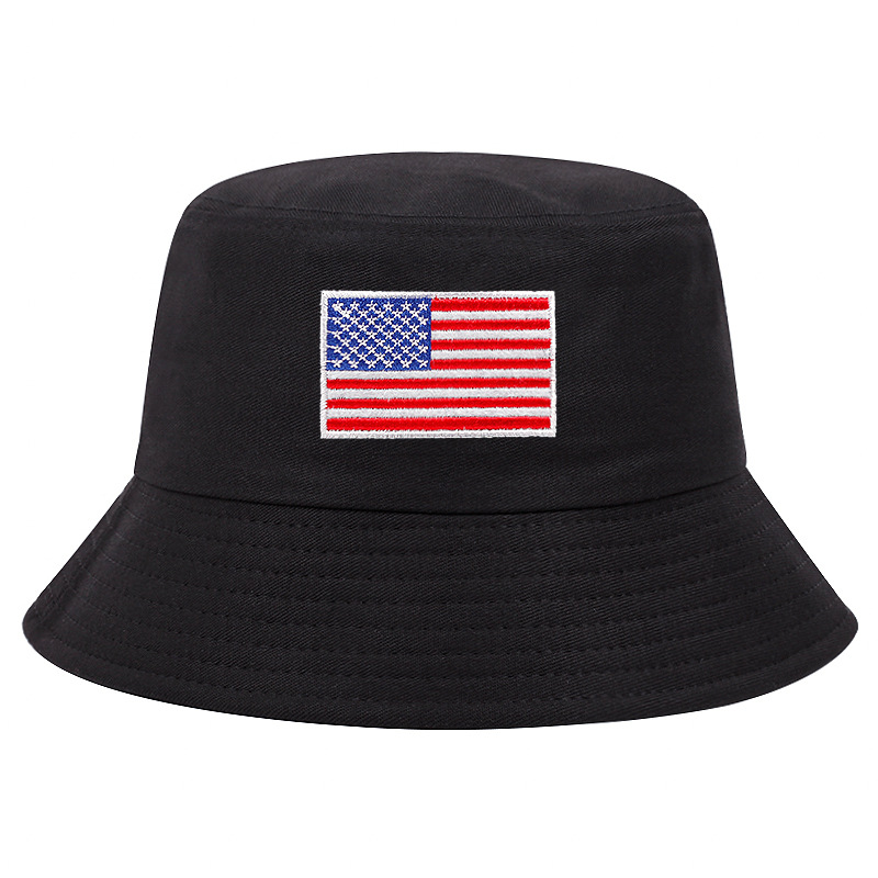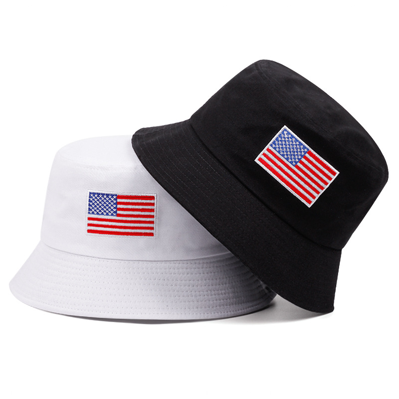 网红新款夏季时尚刺绣国旗渔夫帽男女户外百搭太阳帽潮