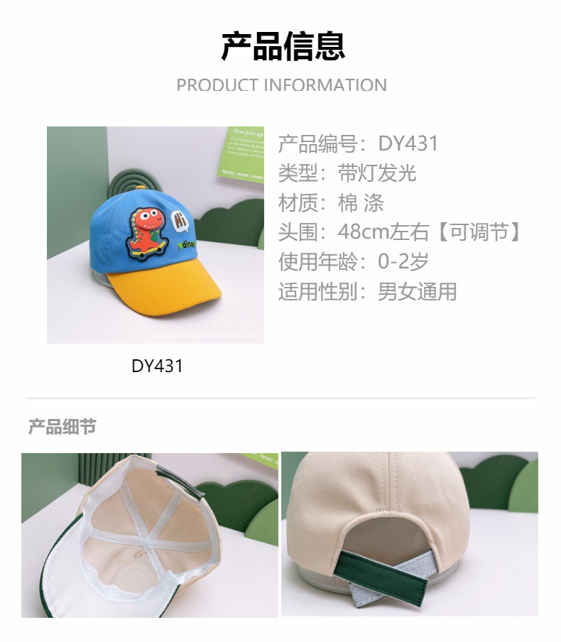 儿童鸭舌帽卡通亮灯恐龙灯芯绒棒球帽2023秋季新款男童短檐帽帅气