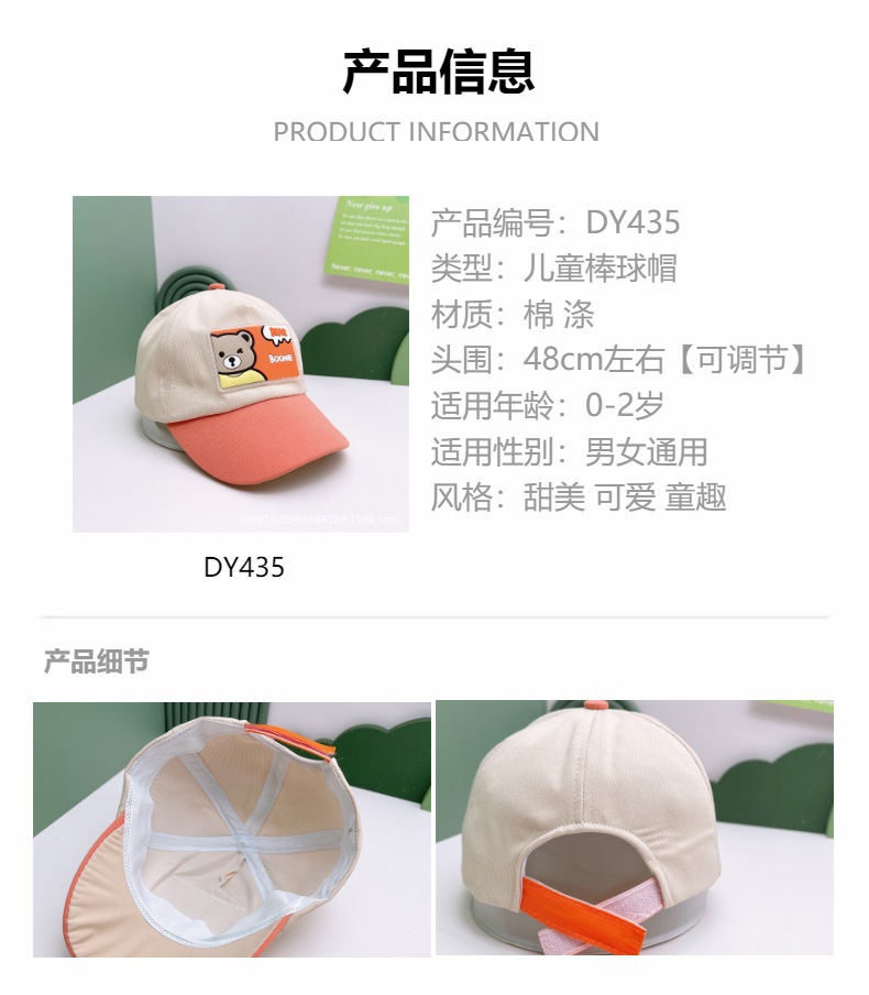 儿童棒球帽春季新款婴儿童帽小熊卡通遮阳可爱休闲