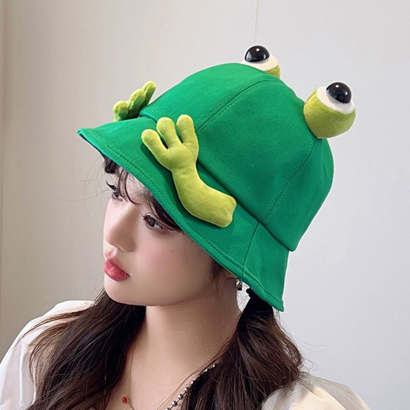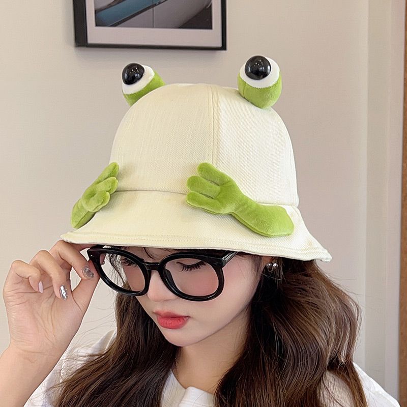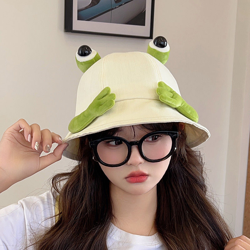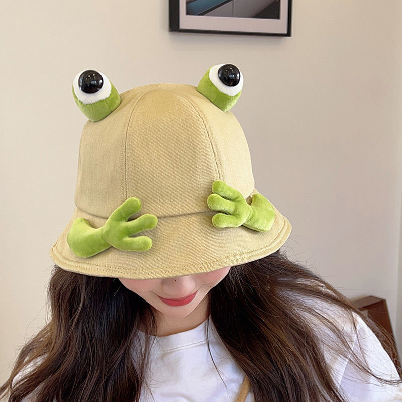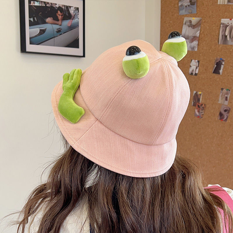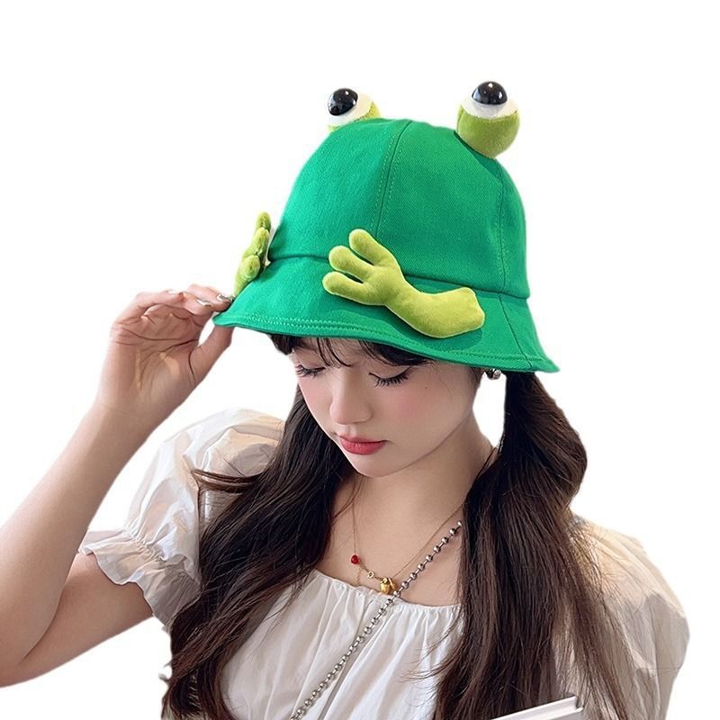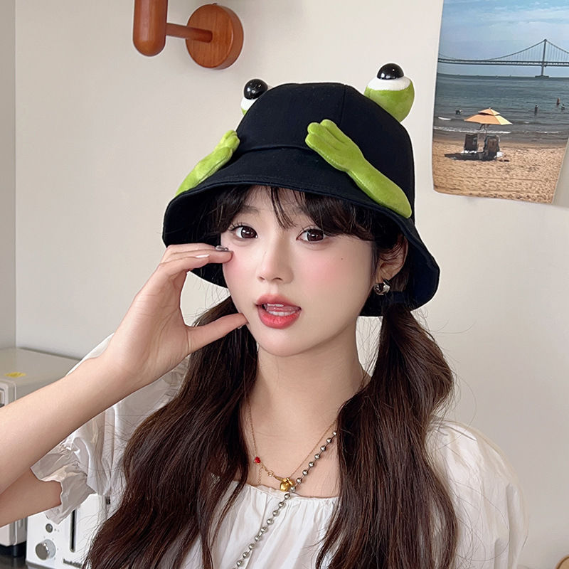 日系可爱青蛙帽子女春夏学生情侣百搭卡通渔夫帽户外出游遮阳盆帽