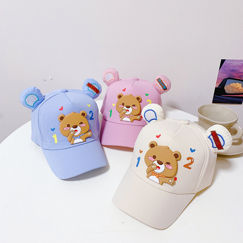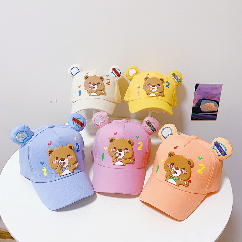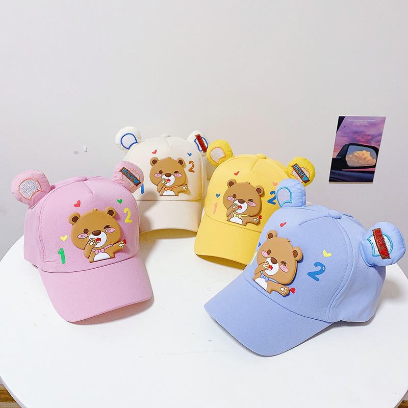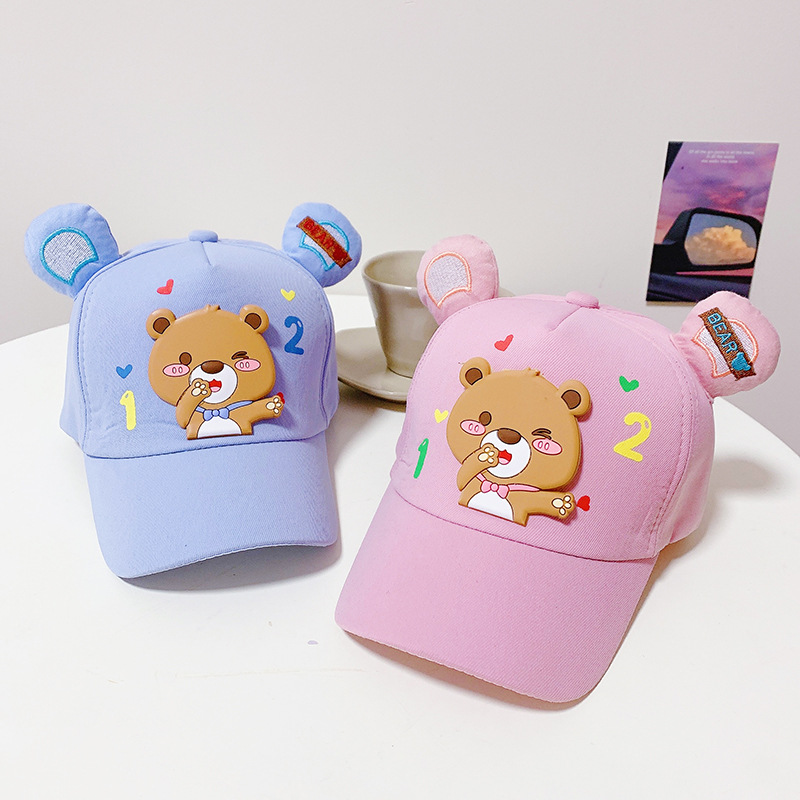 儿童鸭舌帽新款春秋季男孩棒球帽女童潮韩宝宝外出帽子卡通小熊帽