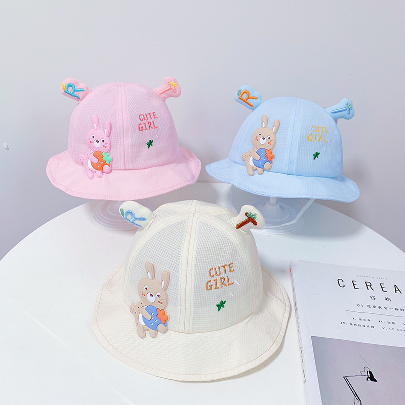 小兔盆帽婴儿帽子春秋款纯棉婴幼儿男童女宝宝薄款遮阳小童渔夫帽