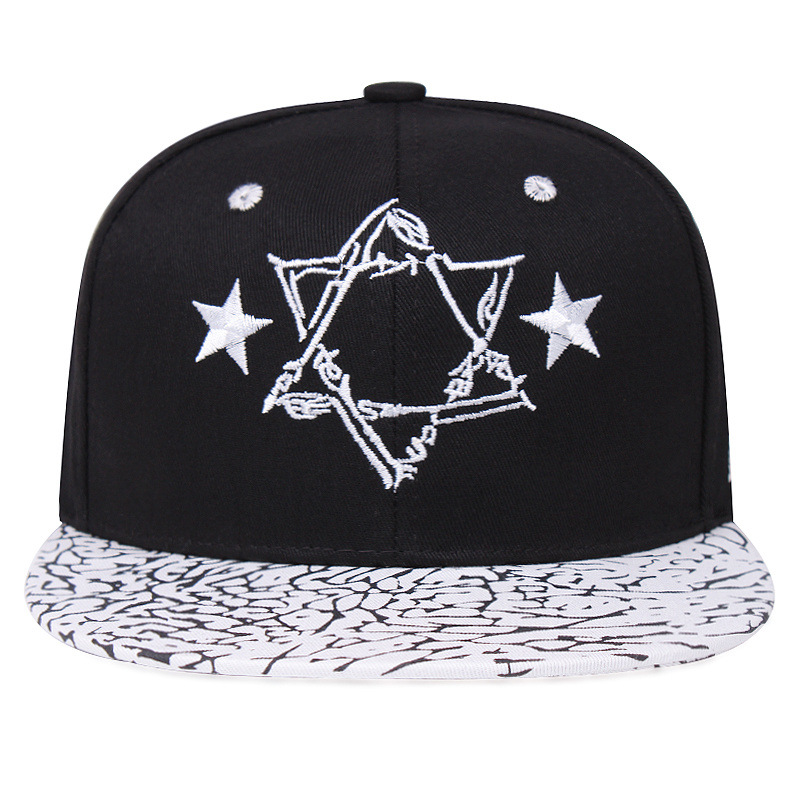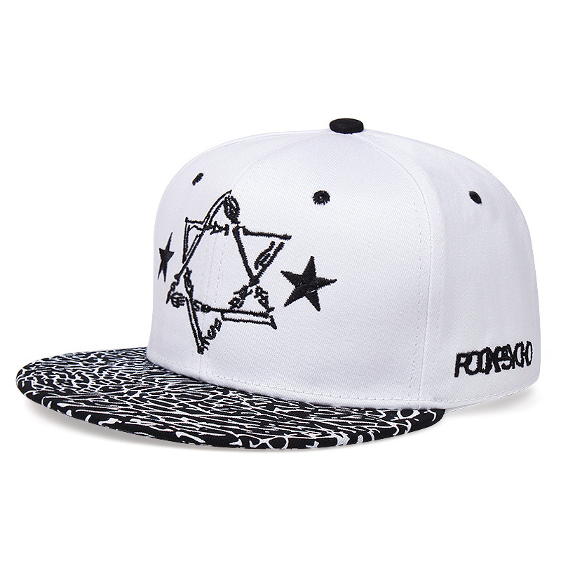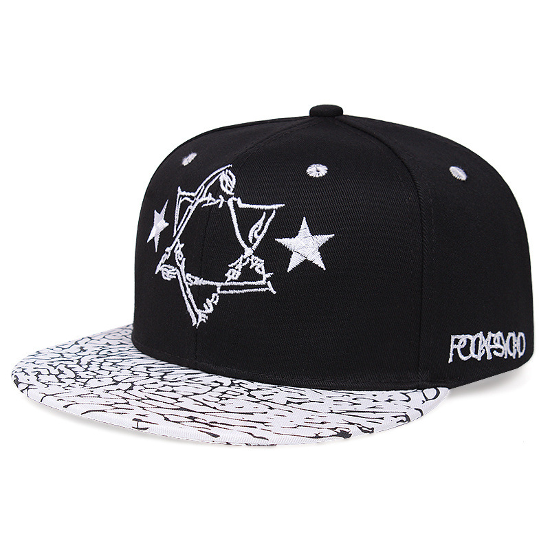 跨境电商男女平沿帽街头刺绣图案五角星嘻哈帽棒球鸭舌帽