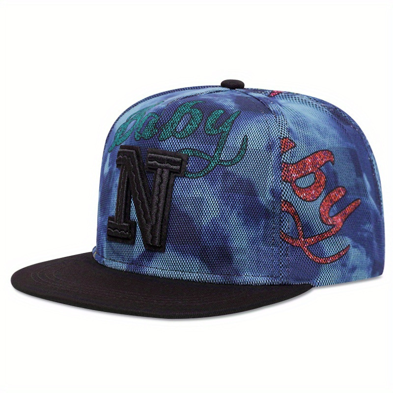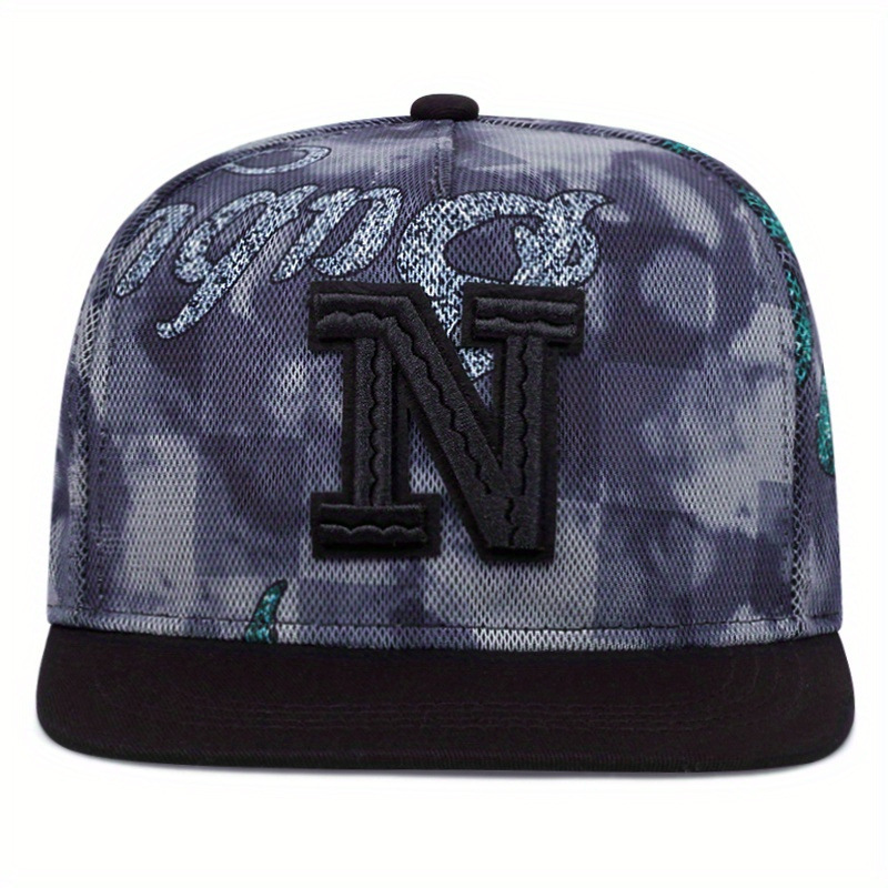 跨境电商男女平沿帽街头刺绣字母N嘻哈帽