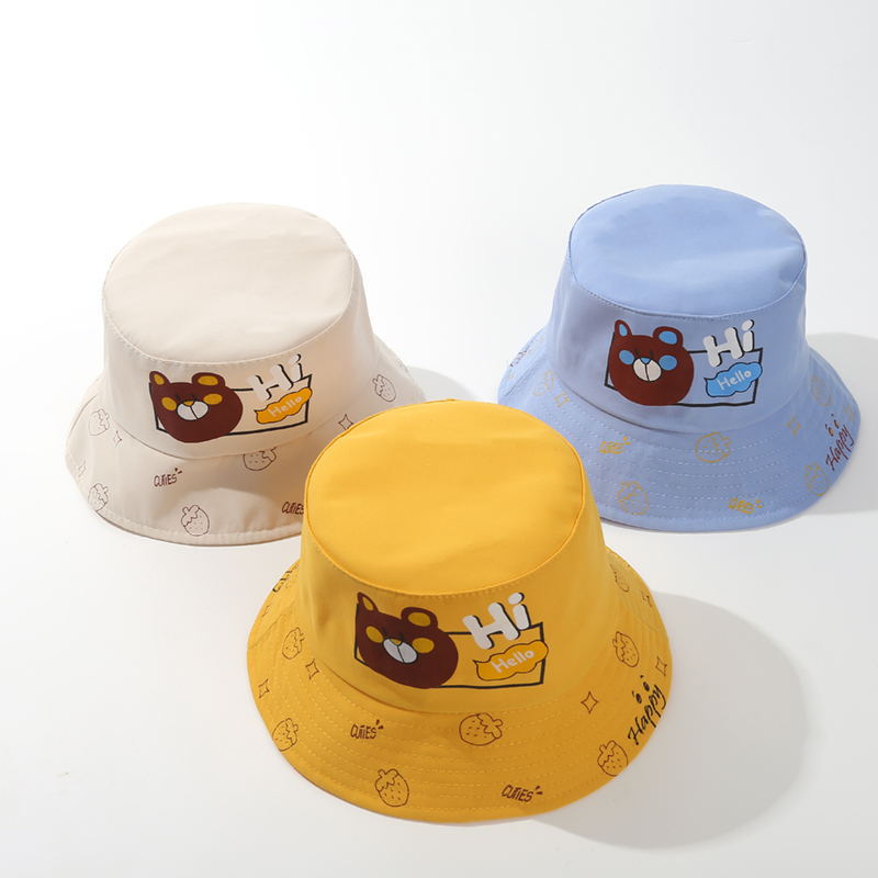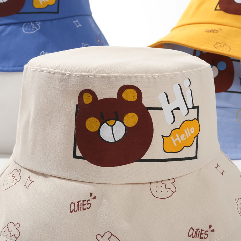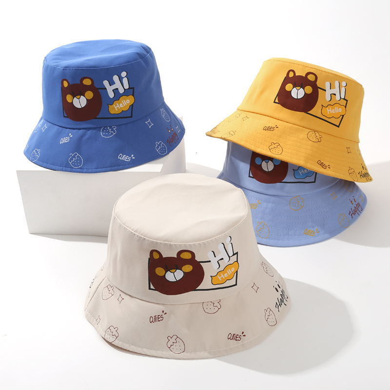 儿童渔夫帽春秋季新款遮阳宝宝盆帽可爱卡通百搭小熊帽子韩版外贸