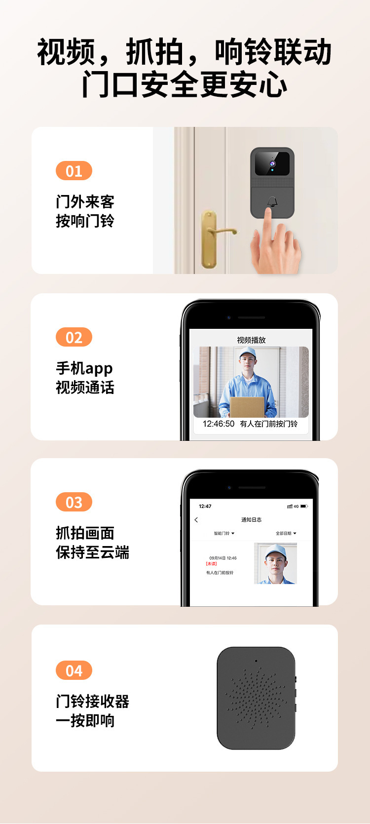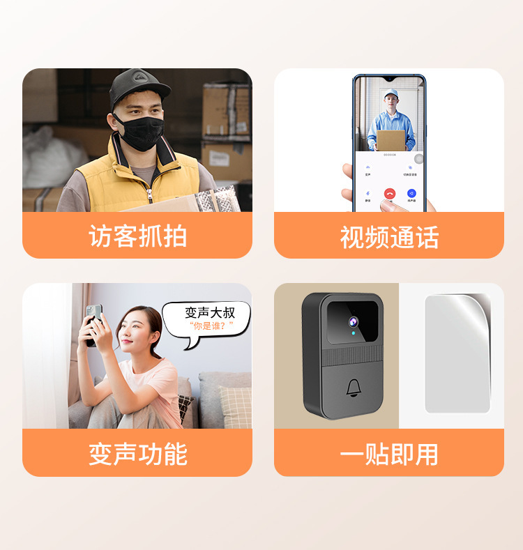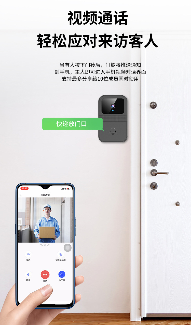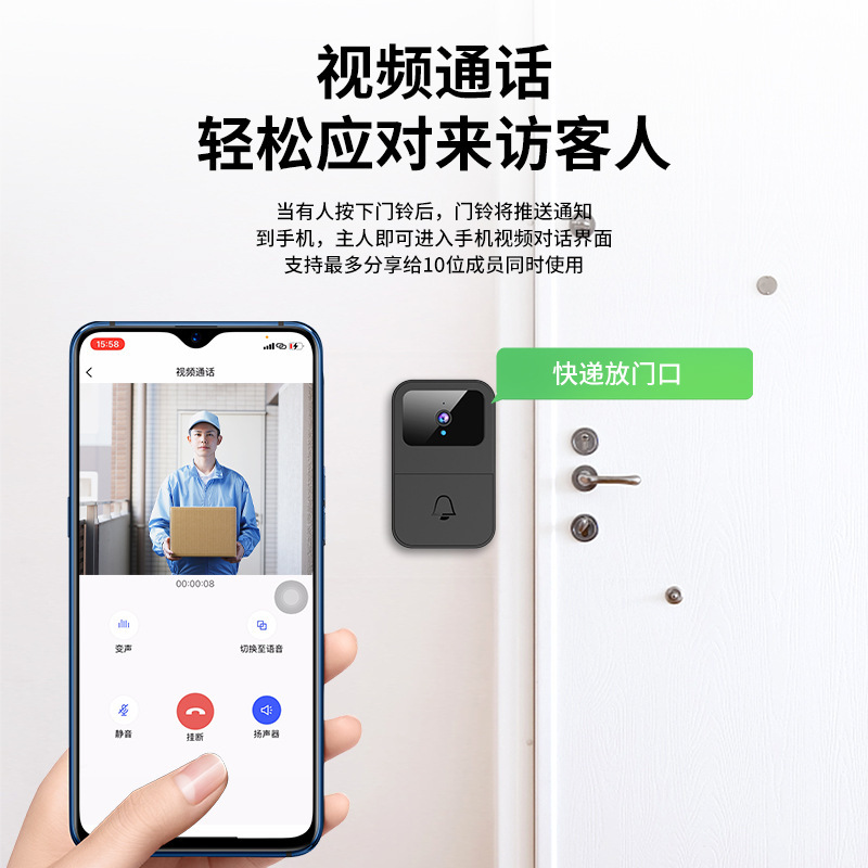 无线wifi可视门铃智能低功耗手机app远程家用视频对讲Doorbell D9