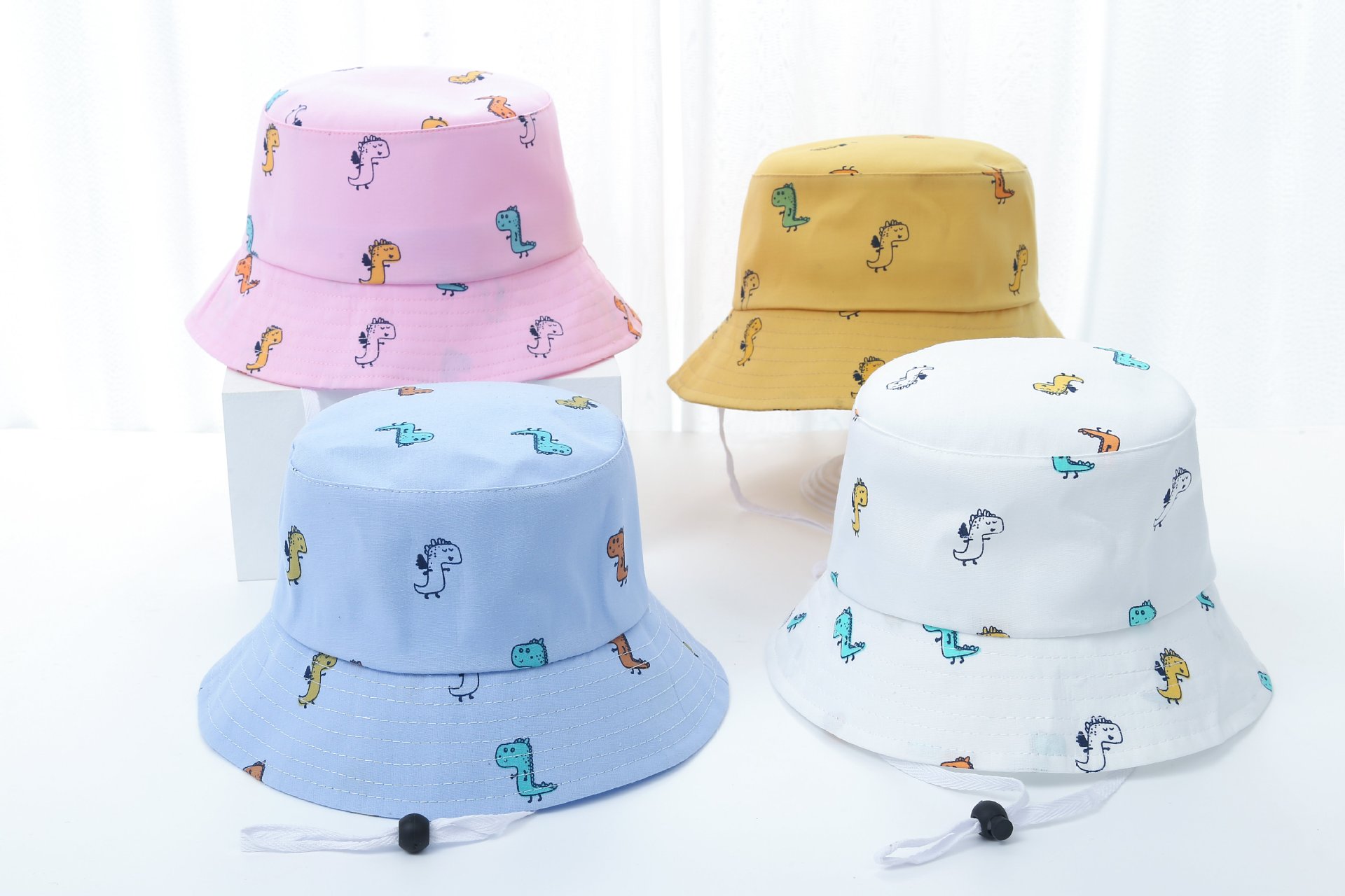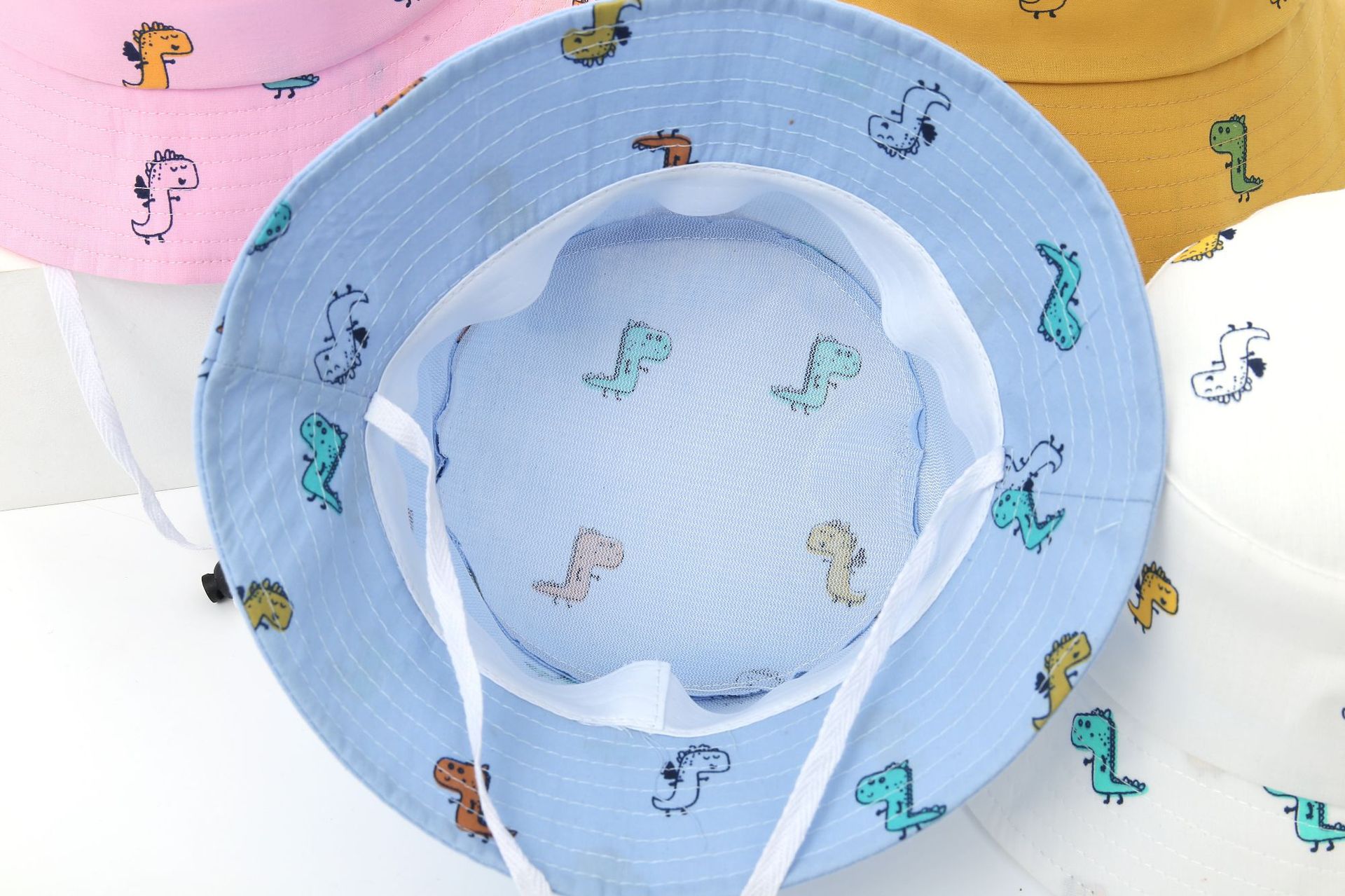 春夏季儿童帽子卡通恐龙宝宝帽渔夫帽婴儿帽遮阳透气防晒厂家批发