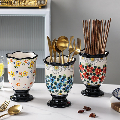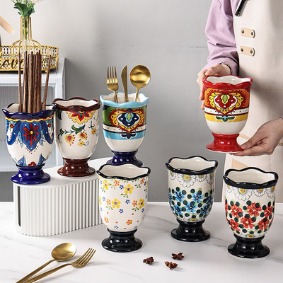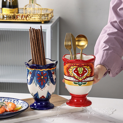 工厂定制异域风情陶瓷筷子筒厨房沥水筷子笼家用高档新款筷子篓
