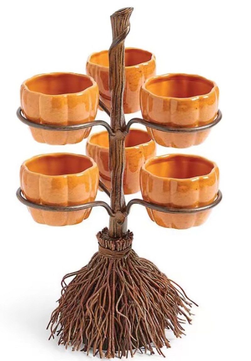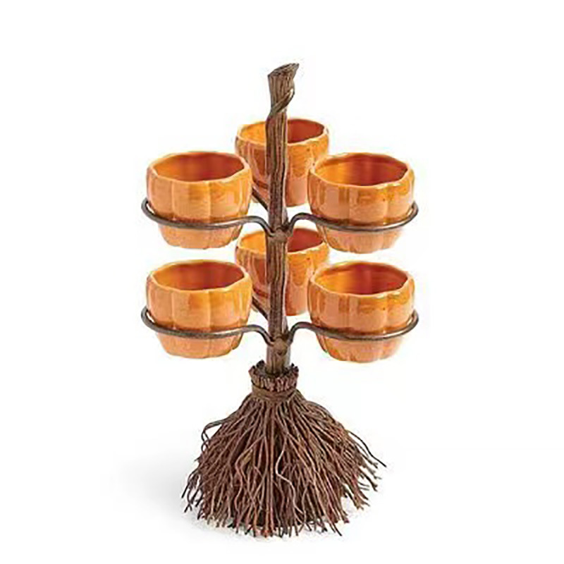 跨境万圣节扫帚南瓜杯盏分离器摆件装饰品摆件树脂南瓜杯扫帚托盘