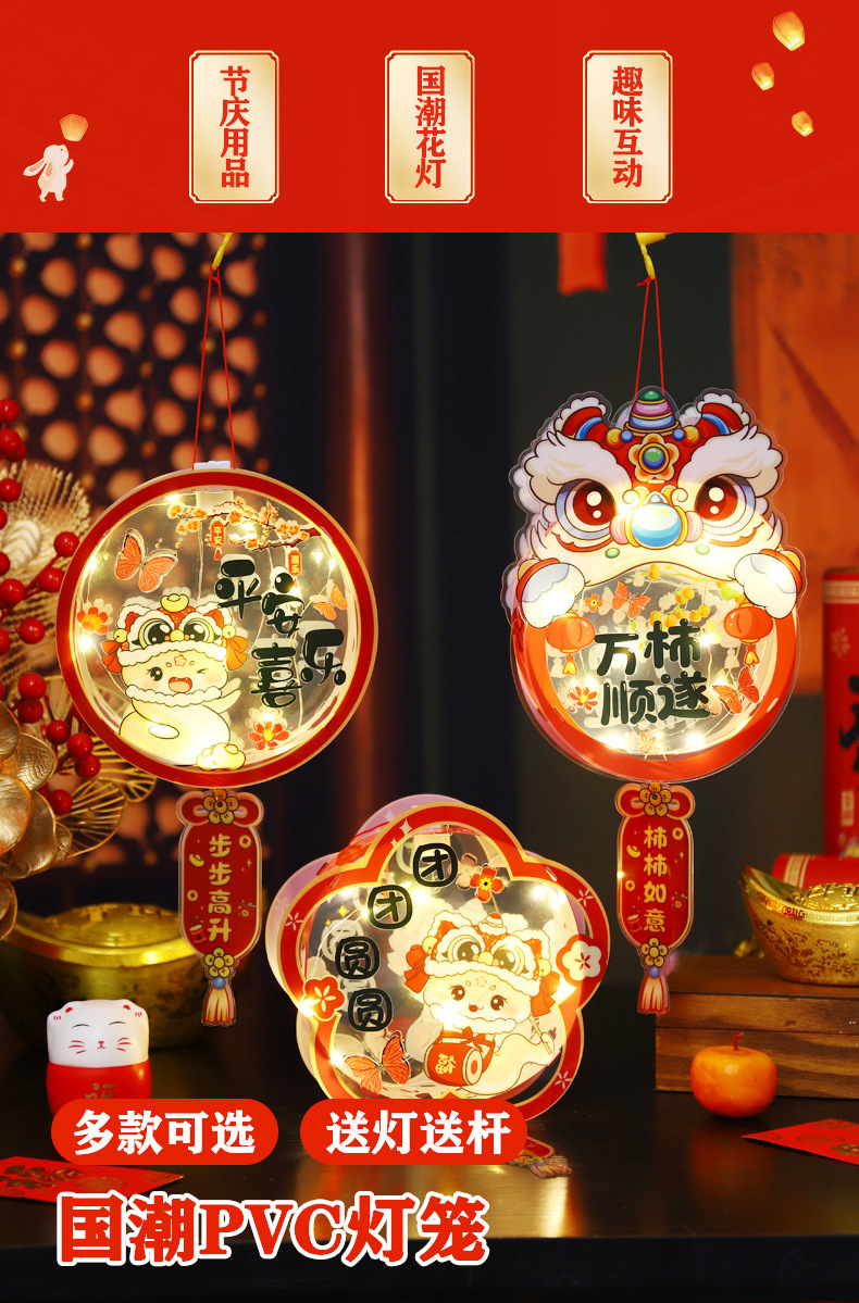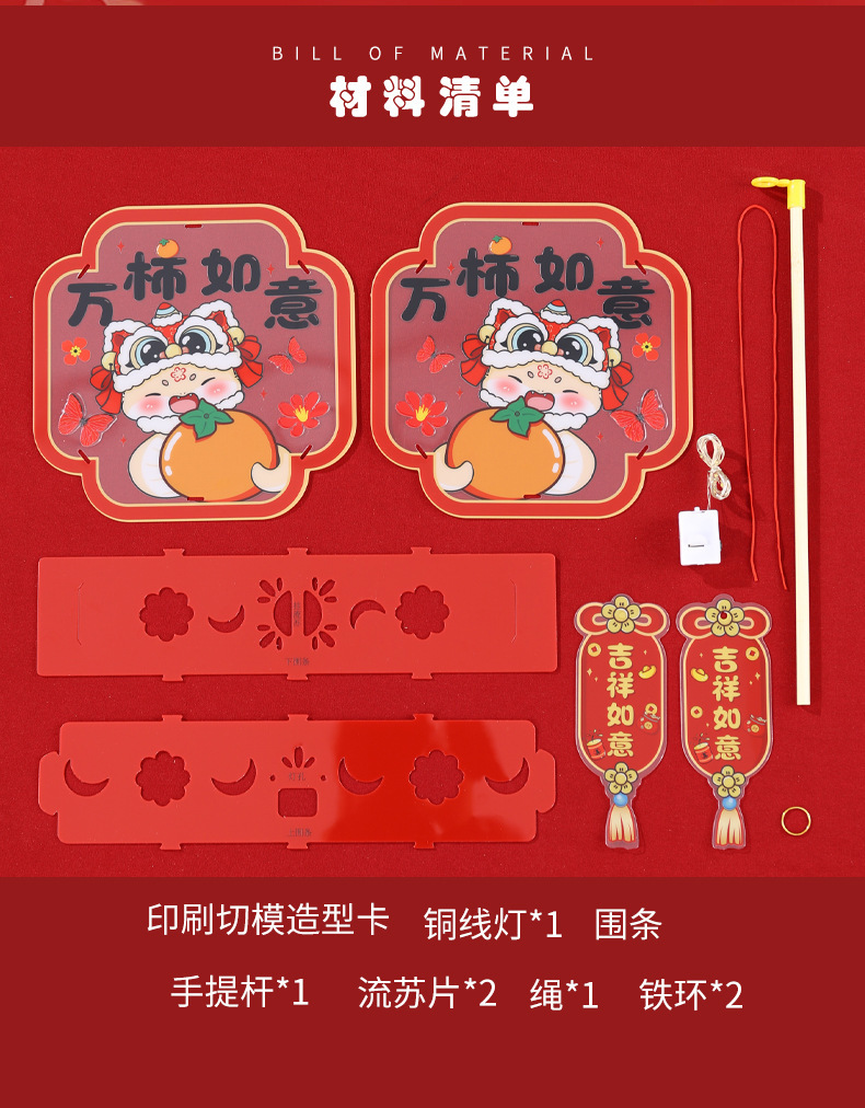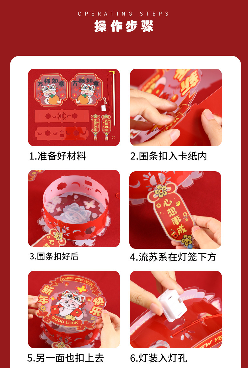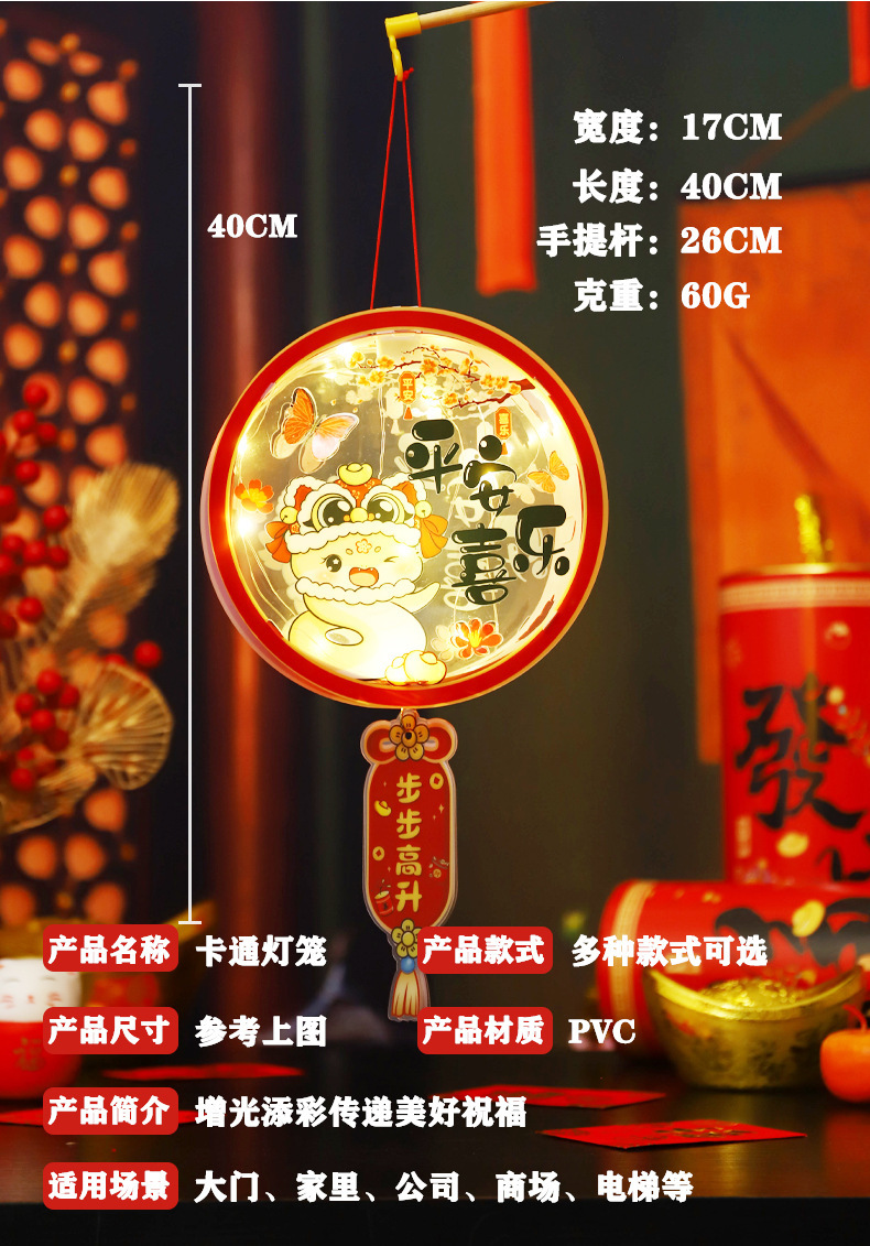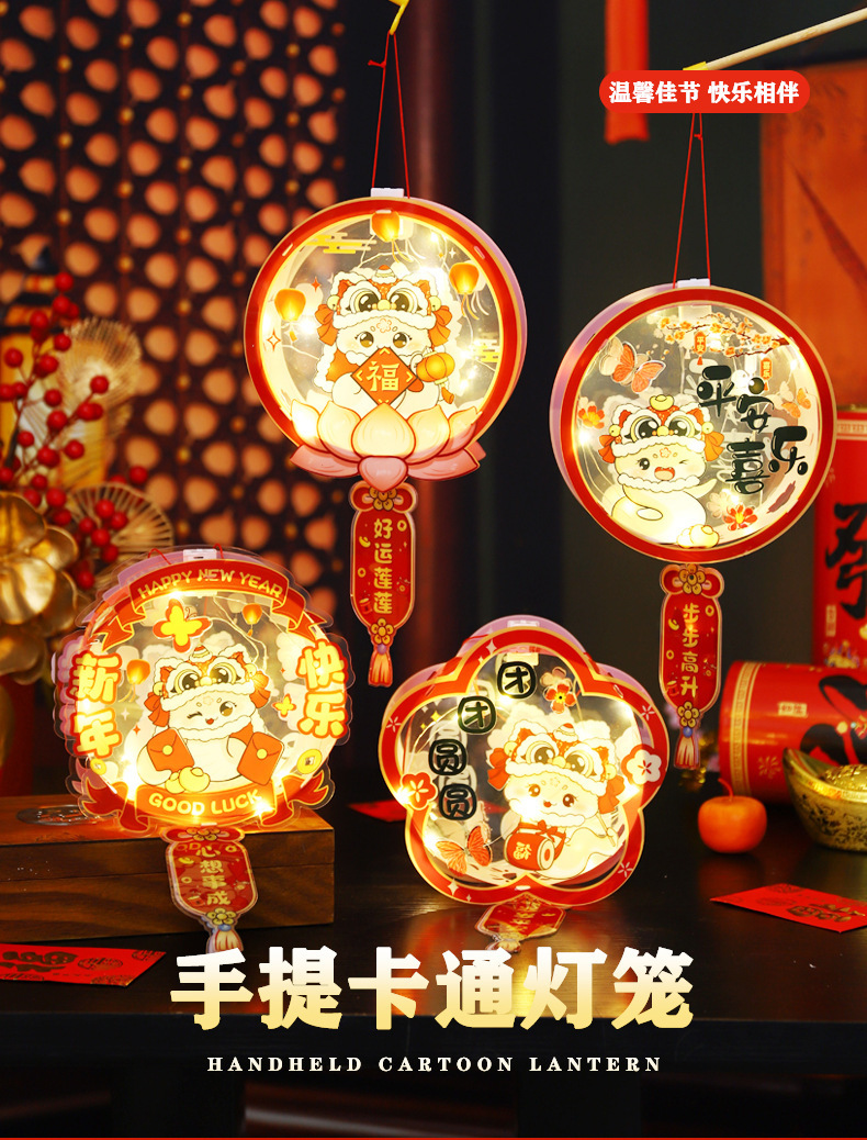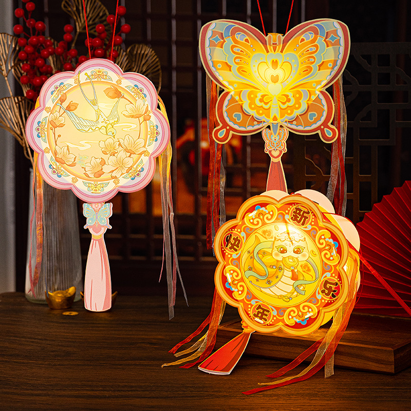 2025蛇年新年灯笼元宵节手提花灯走马灯笼diy材料包发光宫灯地摊