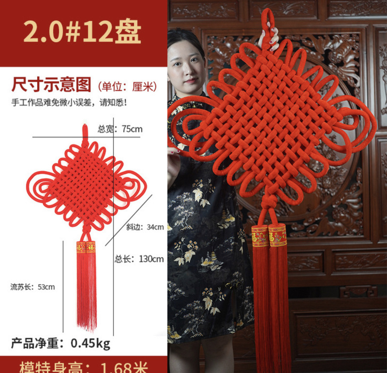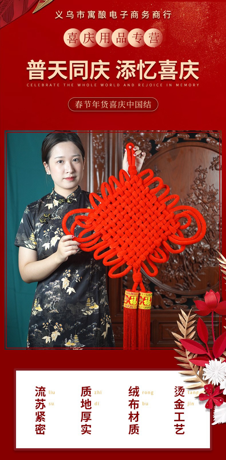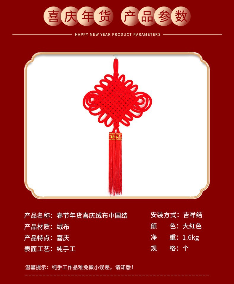 义乌厂家大号中国结春节绒布中国结挂件手工编织年货绒布结批发