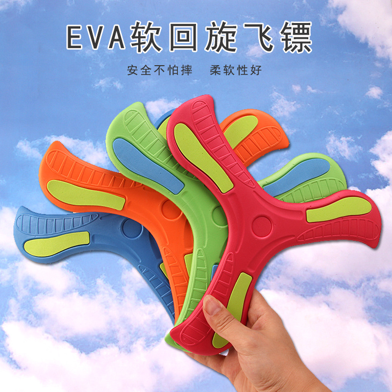 跨境儿童EVA软胶手持三叶回旋镖 回力飞盘碟户外广场地摊玩具批发