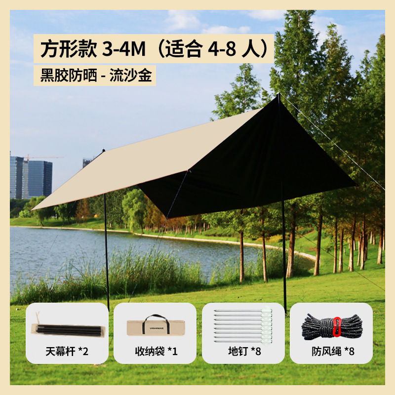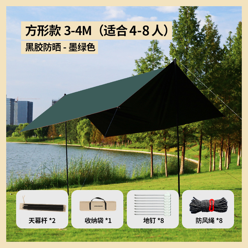 户外帐篷蝶形黑胶天幕野营遮阳防雨防晒方形天幕帐篷户外10-15人