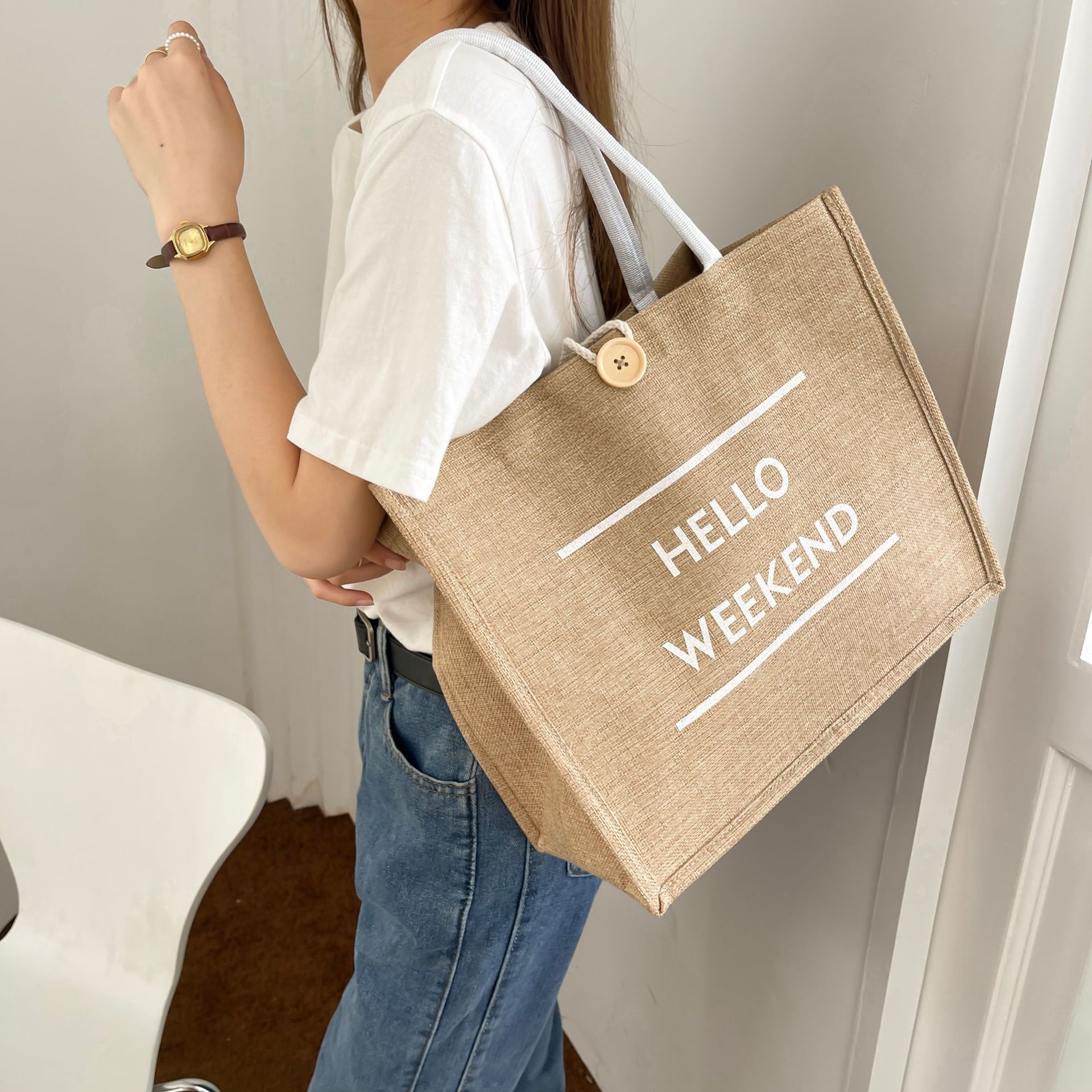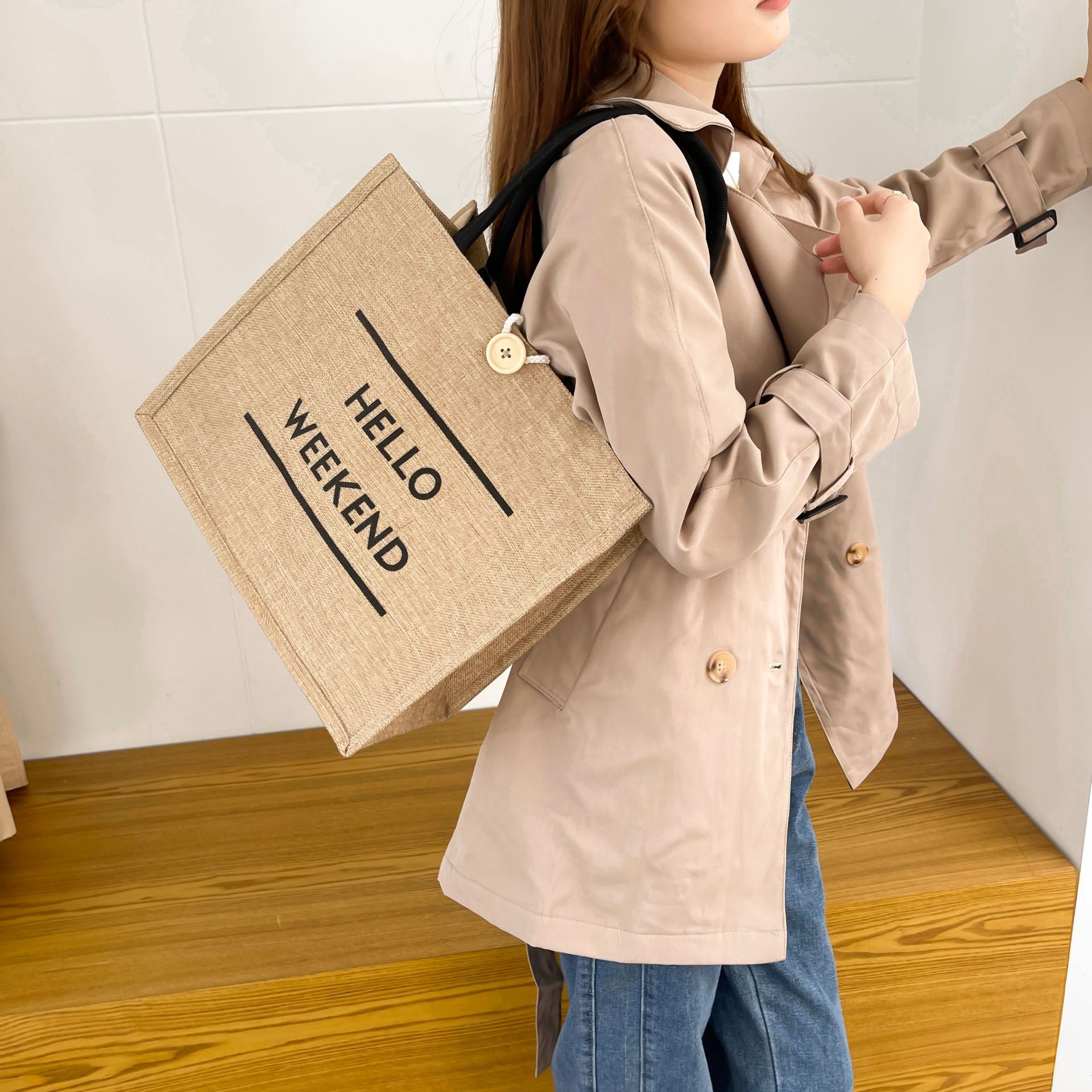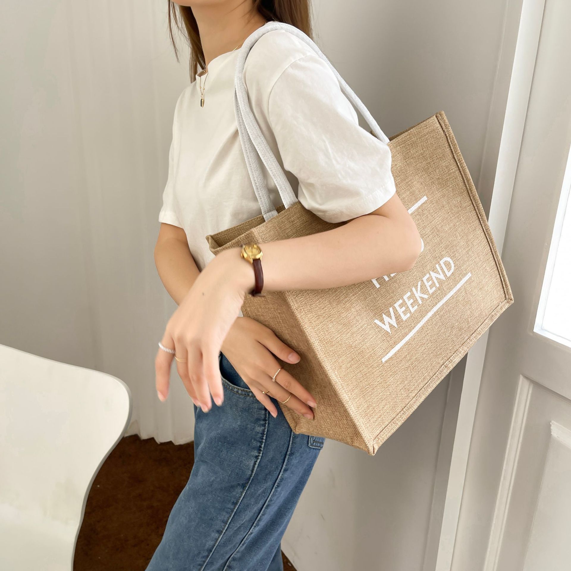 亚马逊大容量通勤包包女2023新款时尚外出妈咪包手提麻布托特包