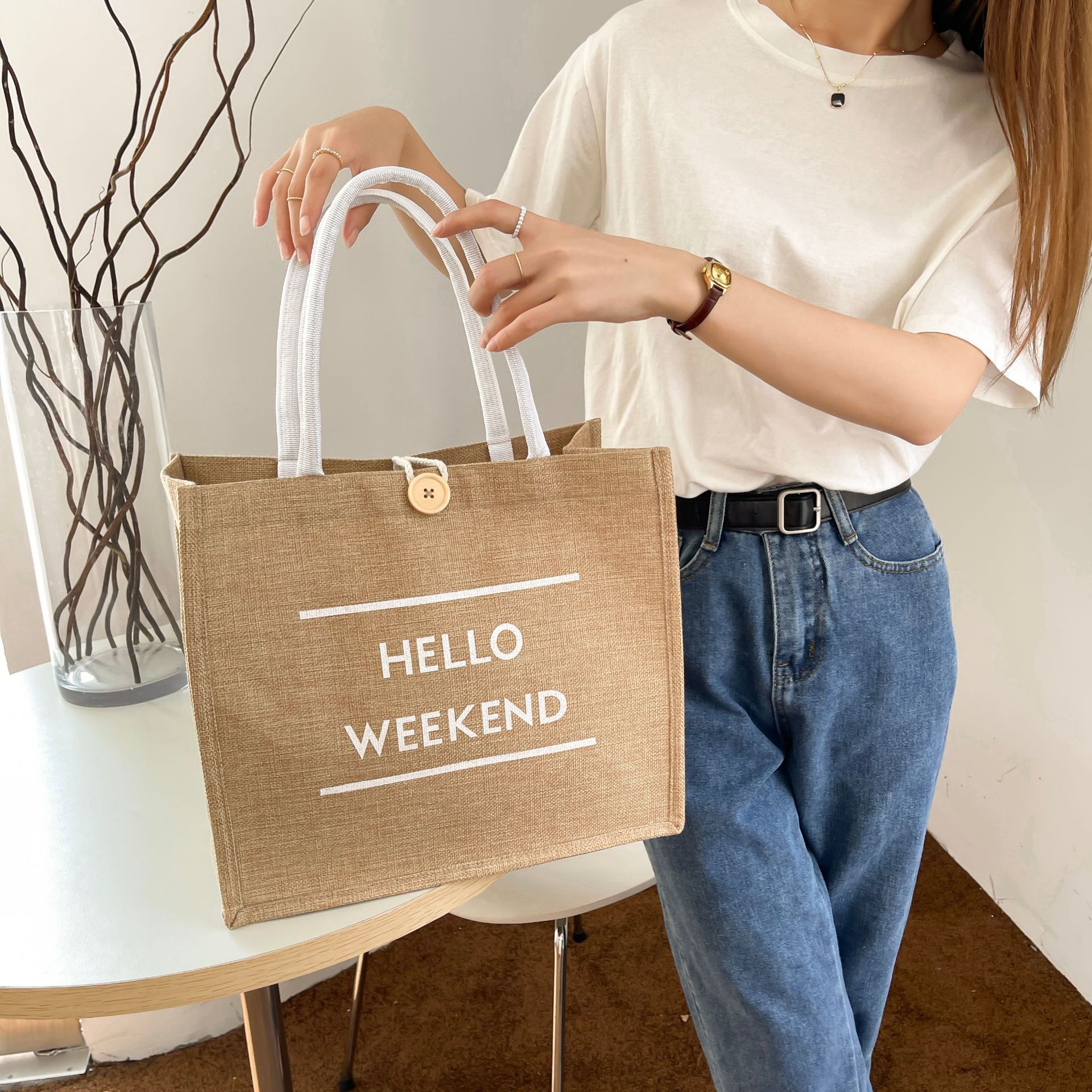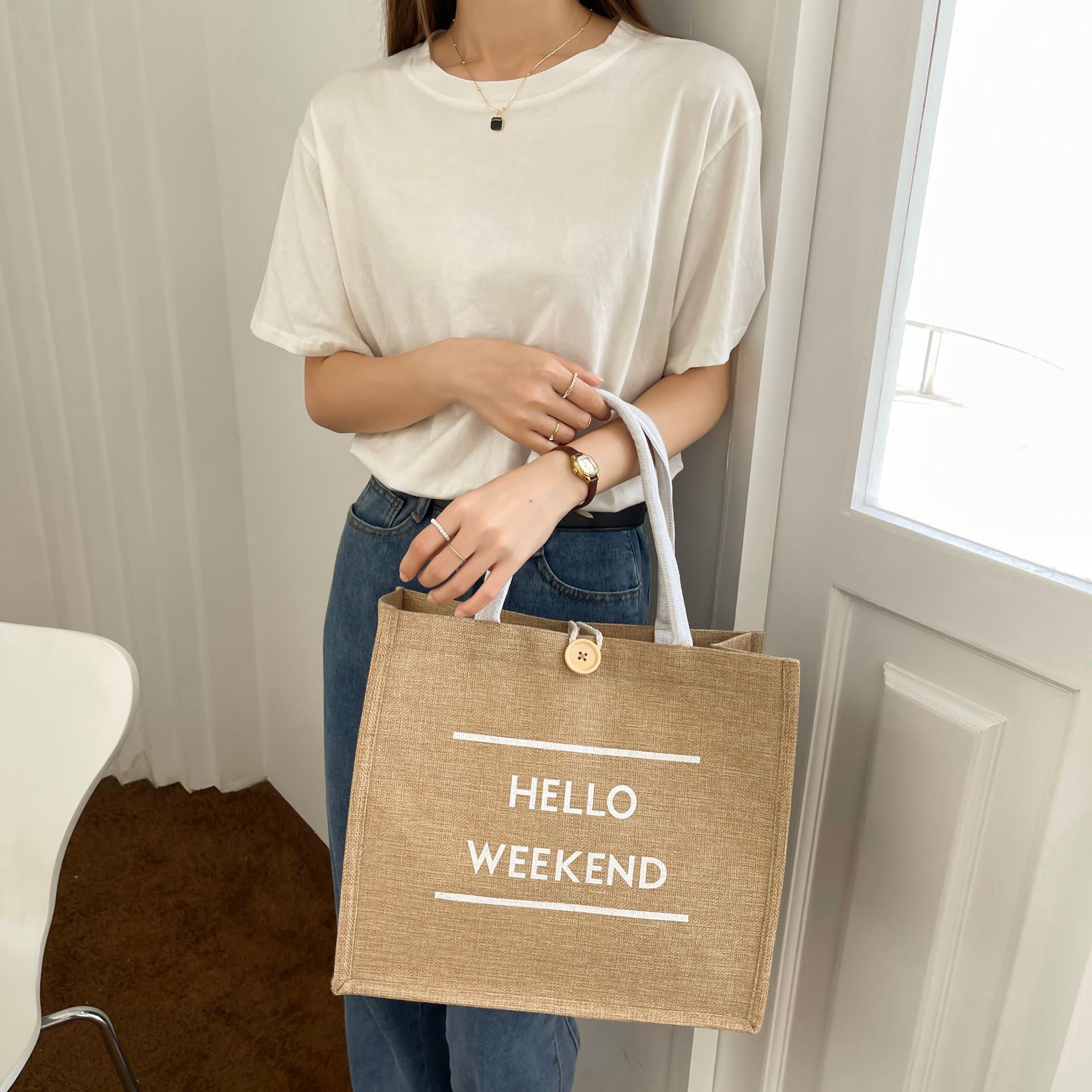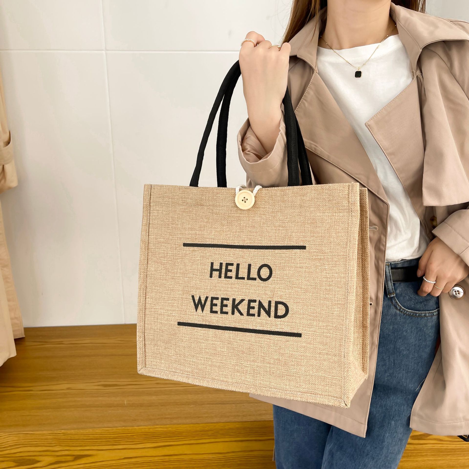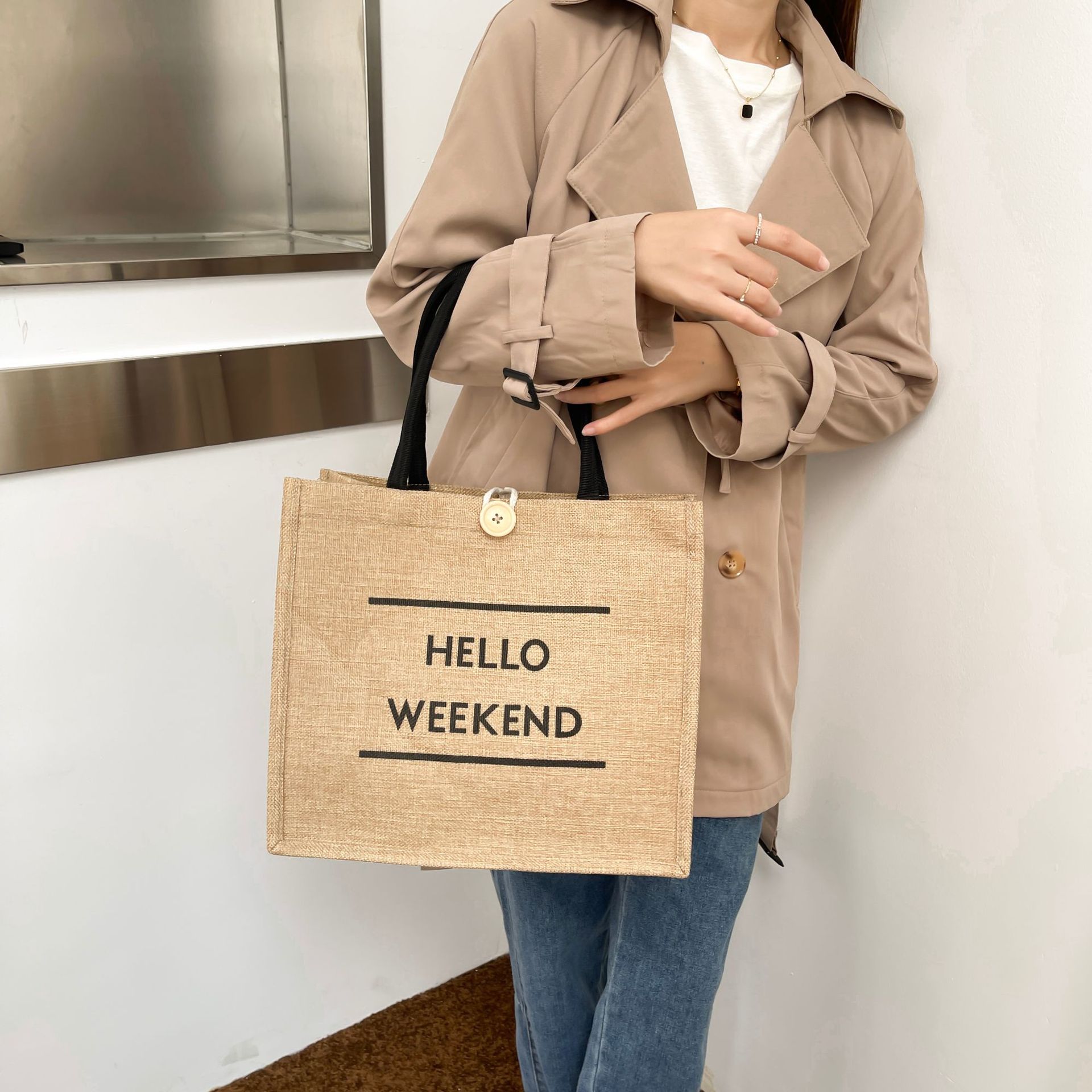 亚马逊大容量通勤包包女2023新款时尚外出妈咪包手提麻布托特包