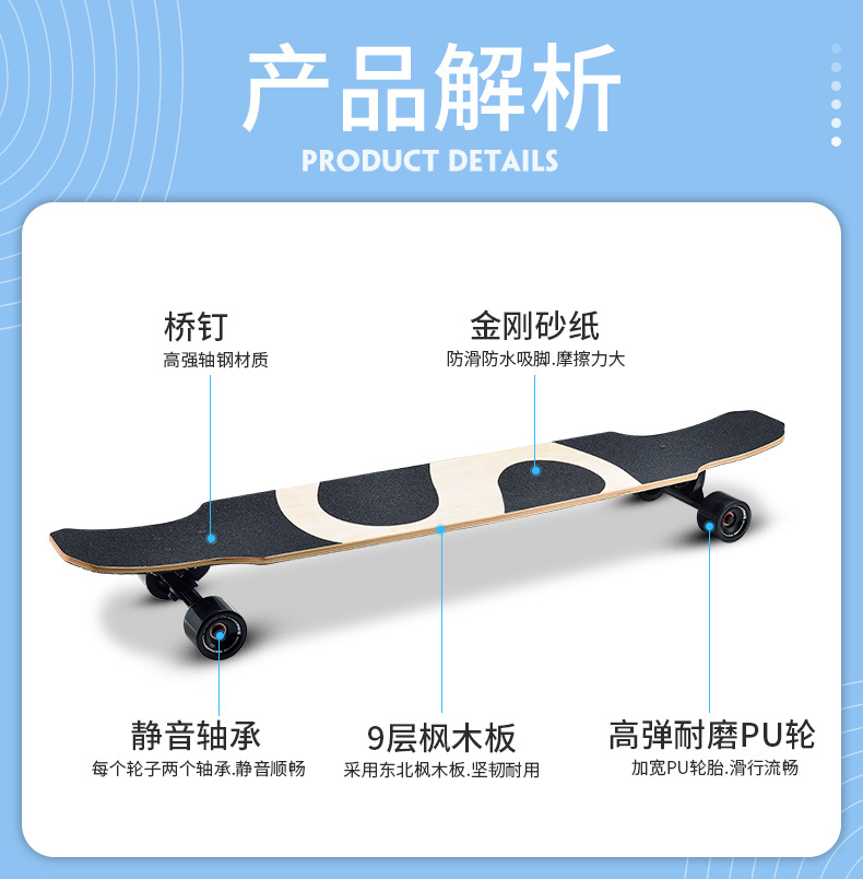 厂家批发成人滑板男生初学者儿童四轮公路滑板舞步板长板图案制作