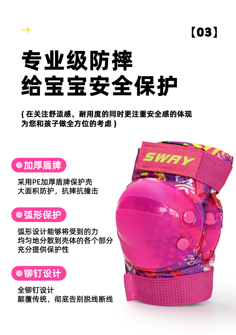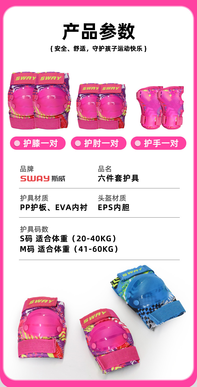 斯威SWAY儿童龟壳护具6-12岁户外运动轮滑骑车全套防摔护具6件套