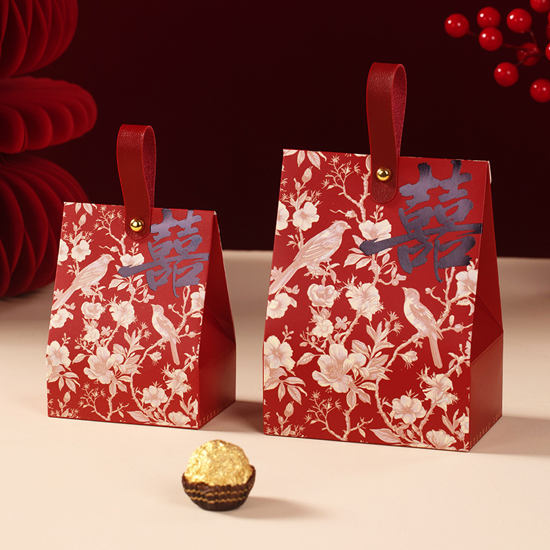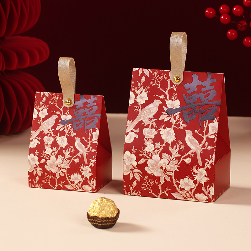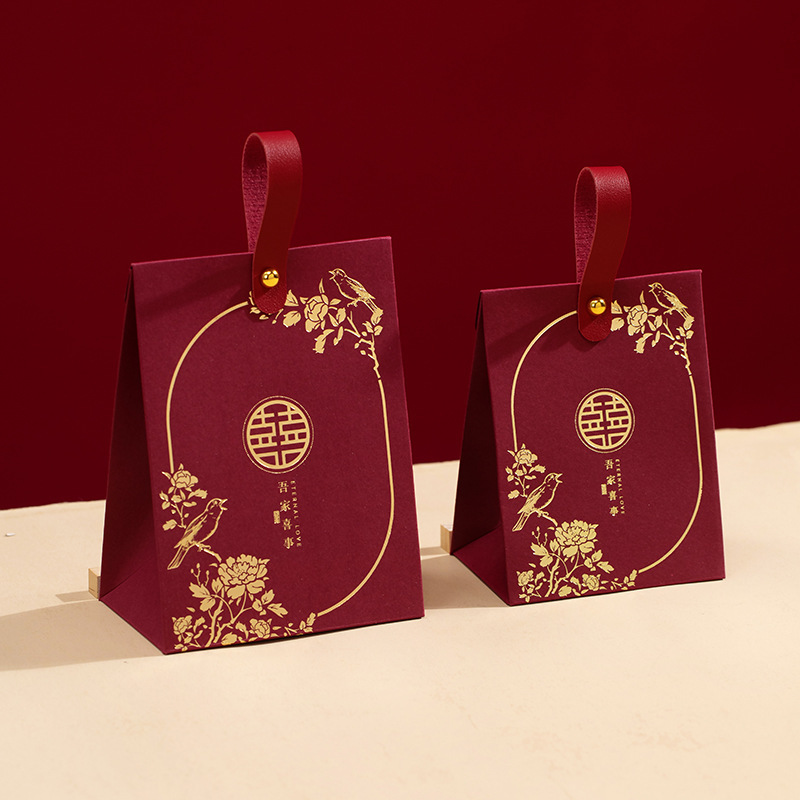 结婚喜糖盒手提款中式喜糖纸盒婚礼订婚伴手礼盒高级感喜糖袋批发