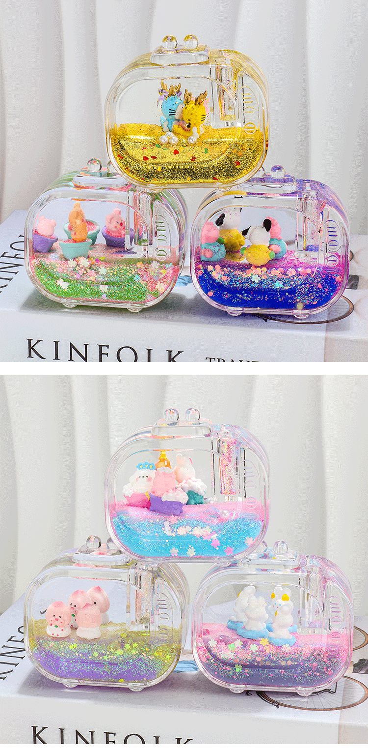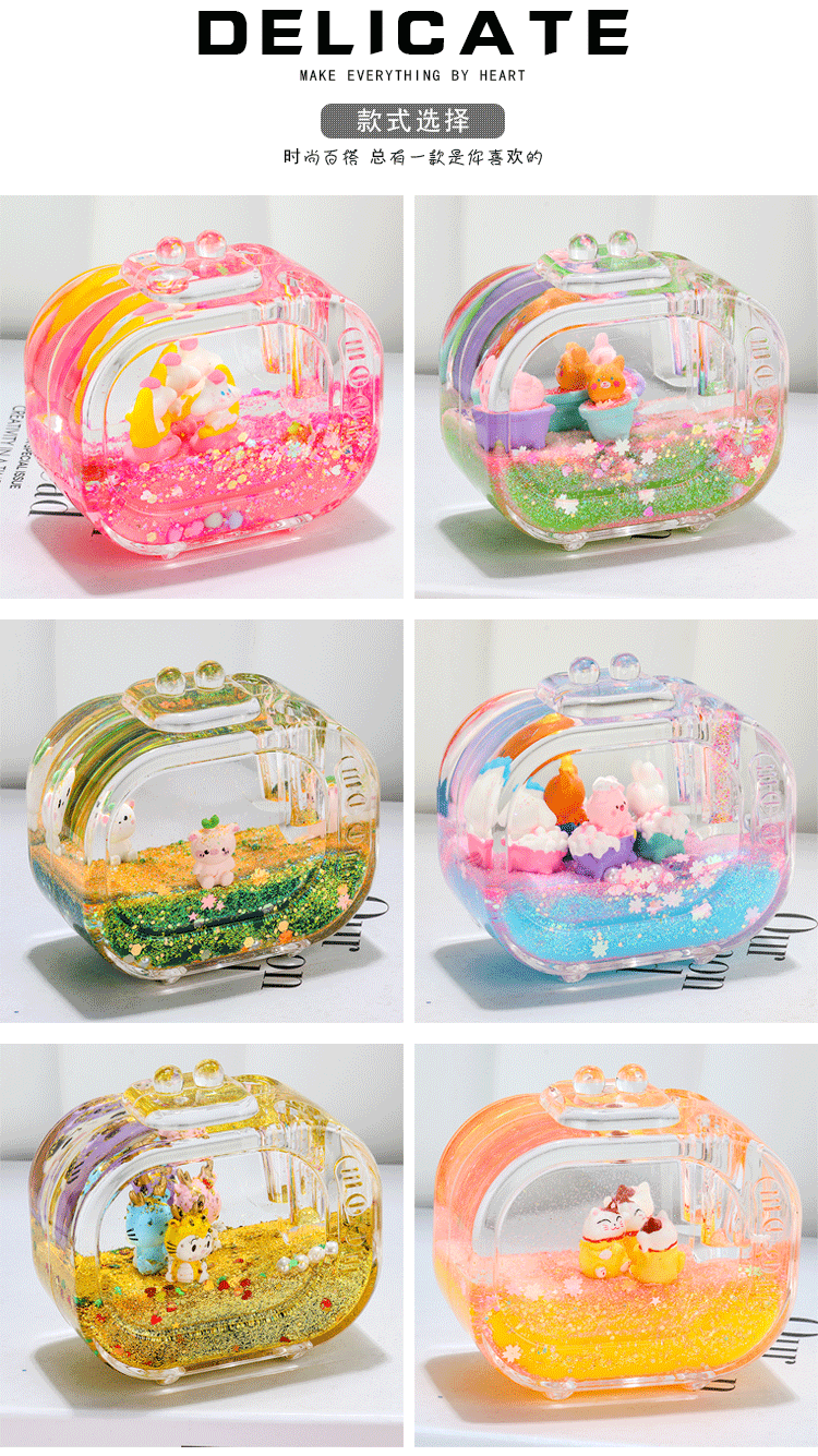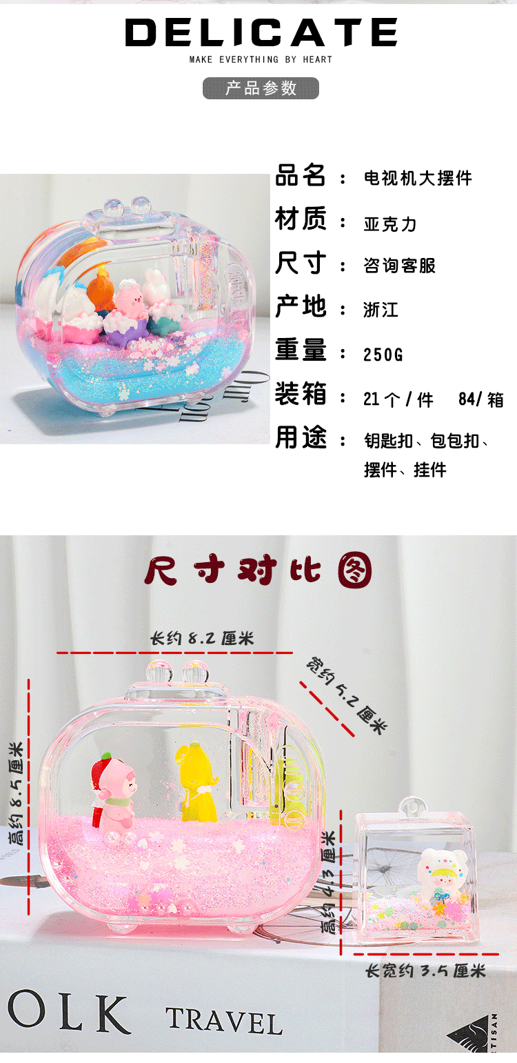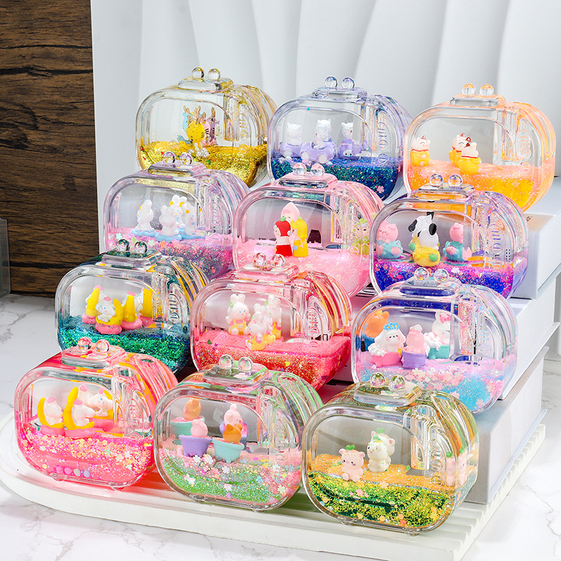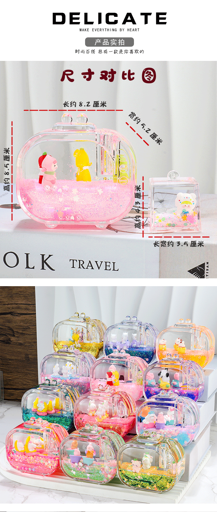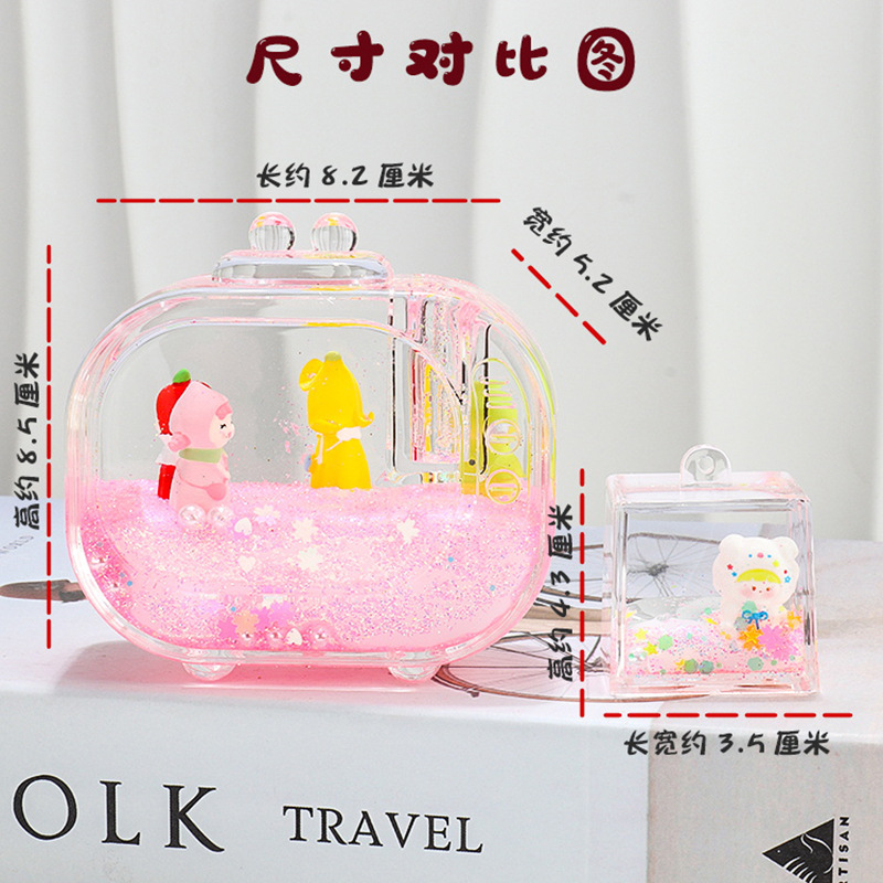 网红抖音盲袋电视机大摆件创意漂浮公仔亚克力入油大号流沙瓶批发