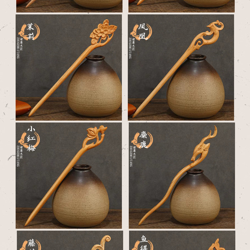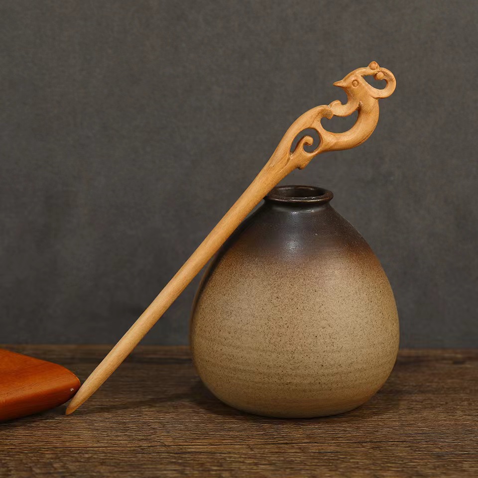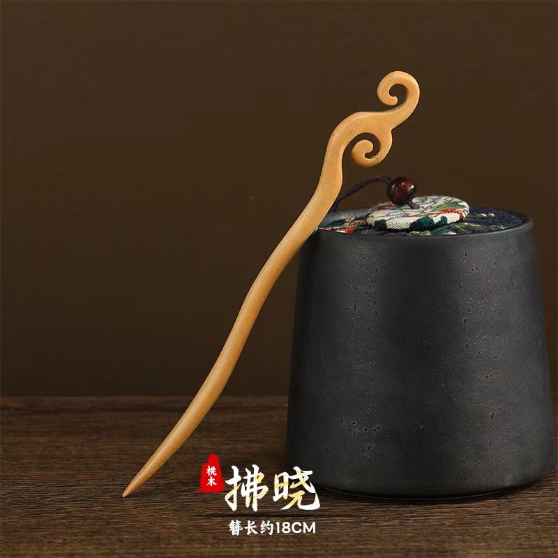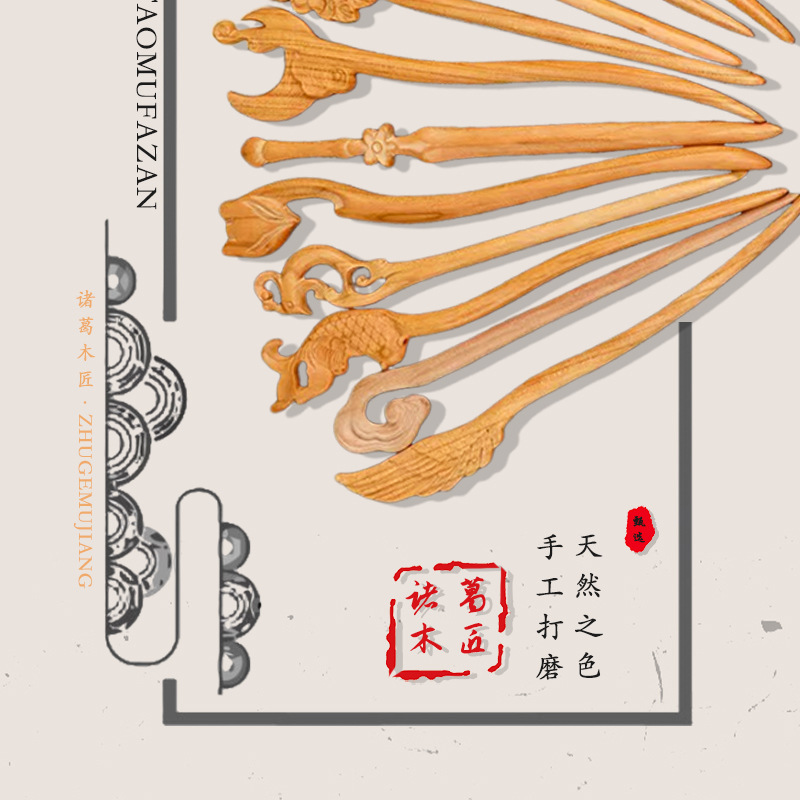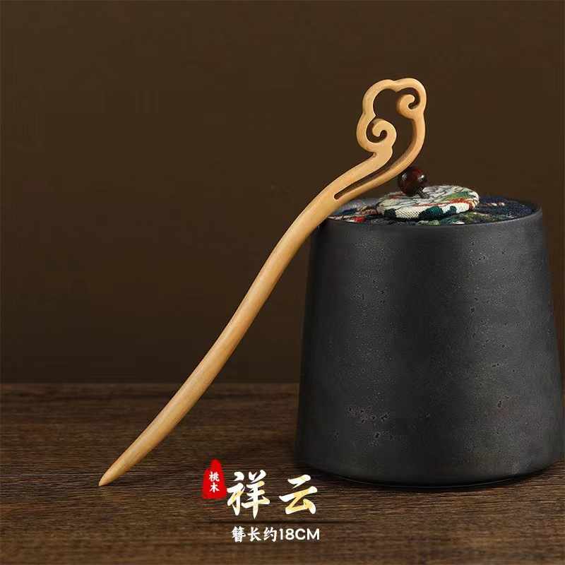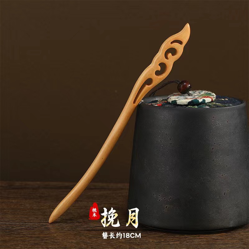 桃木发簪旗袍汉服簪子双面雕刻古风木簪配饰盘发简易木质簪子发钗
