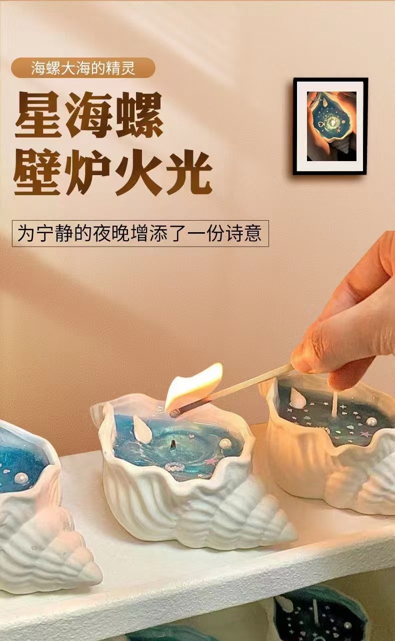 海洋风海螺香薰蜡烛氛围感创意香氛礼盒果冻蜡贝壳海星手工蜡烛