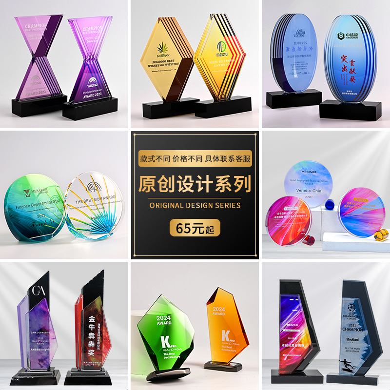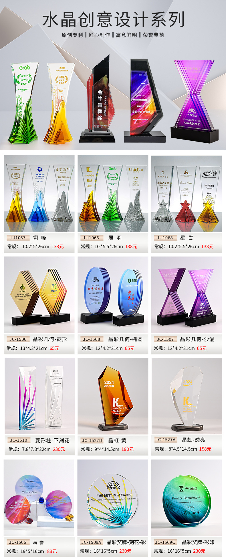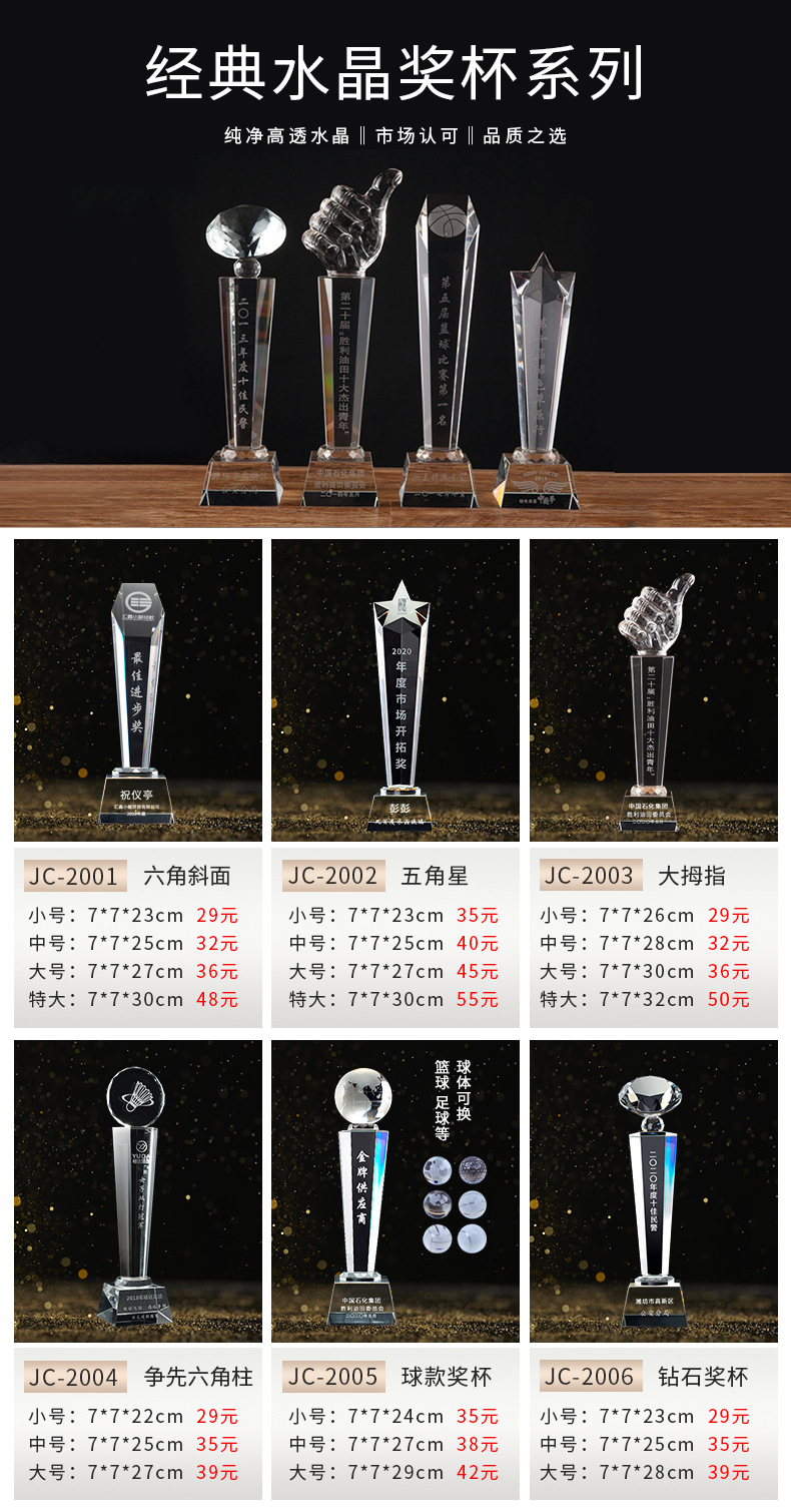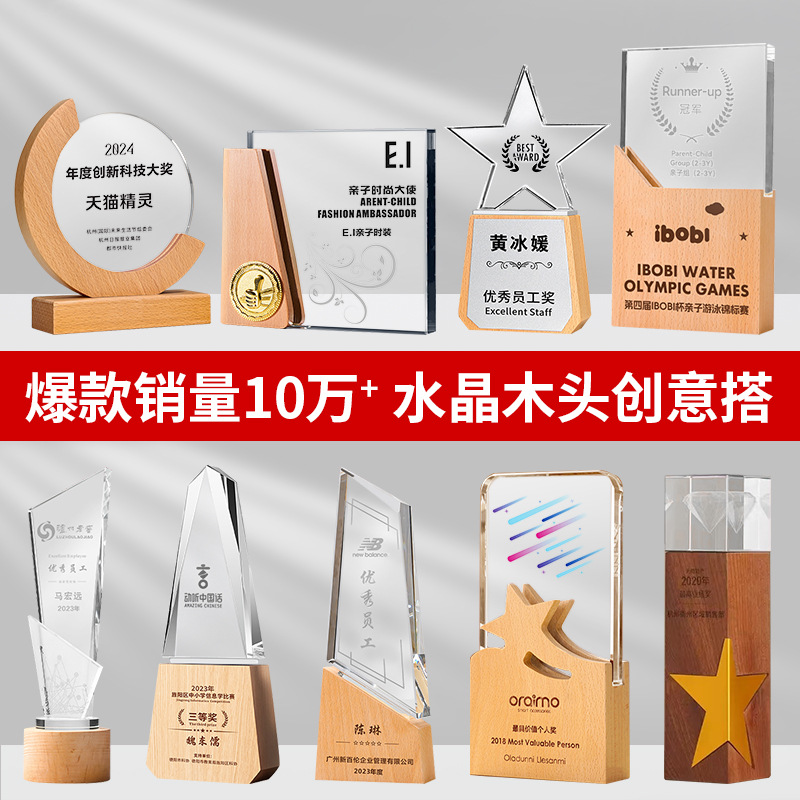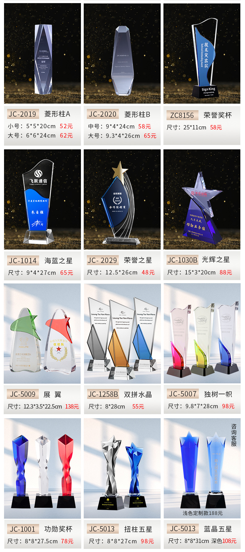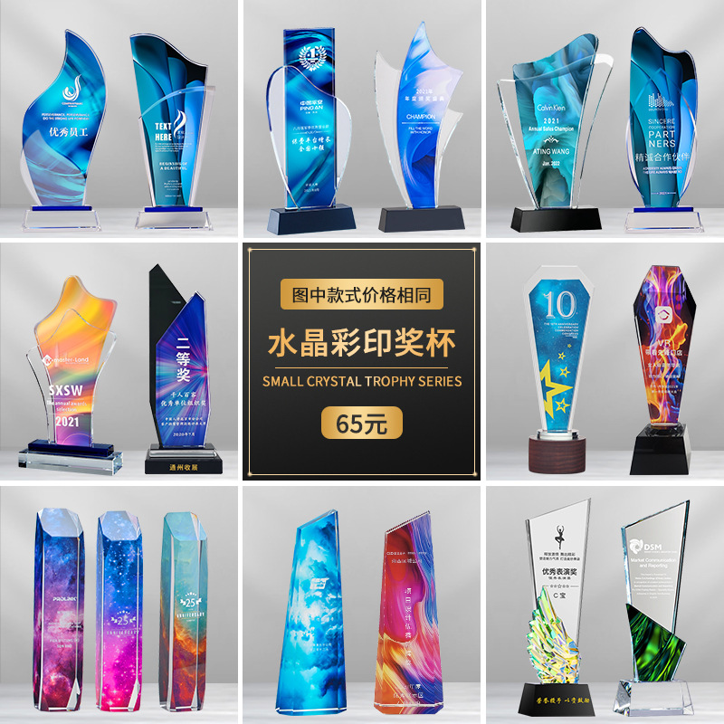 新款水晶奖杯定制免费刻字优秀员工颁奖公司年会奖杯订制奖牌厂家