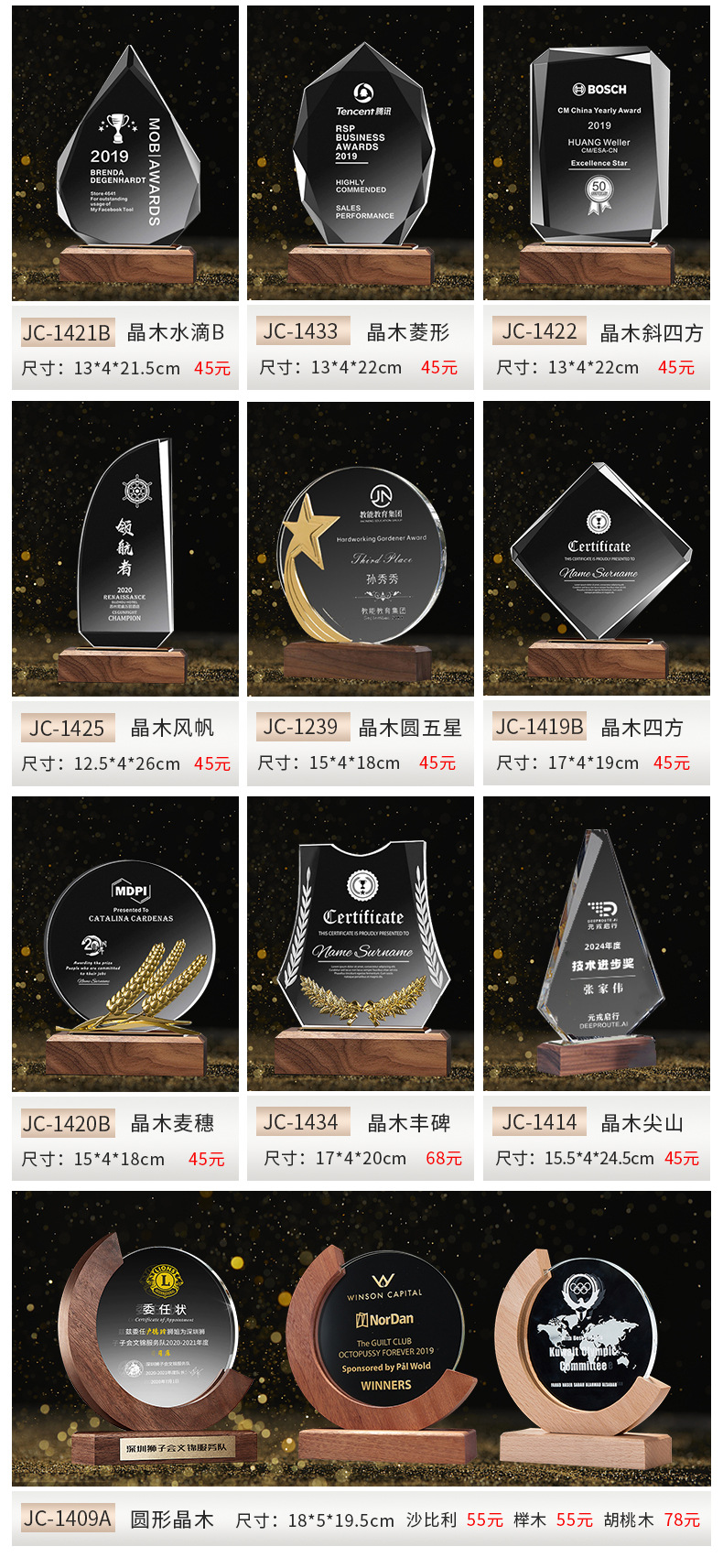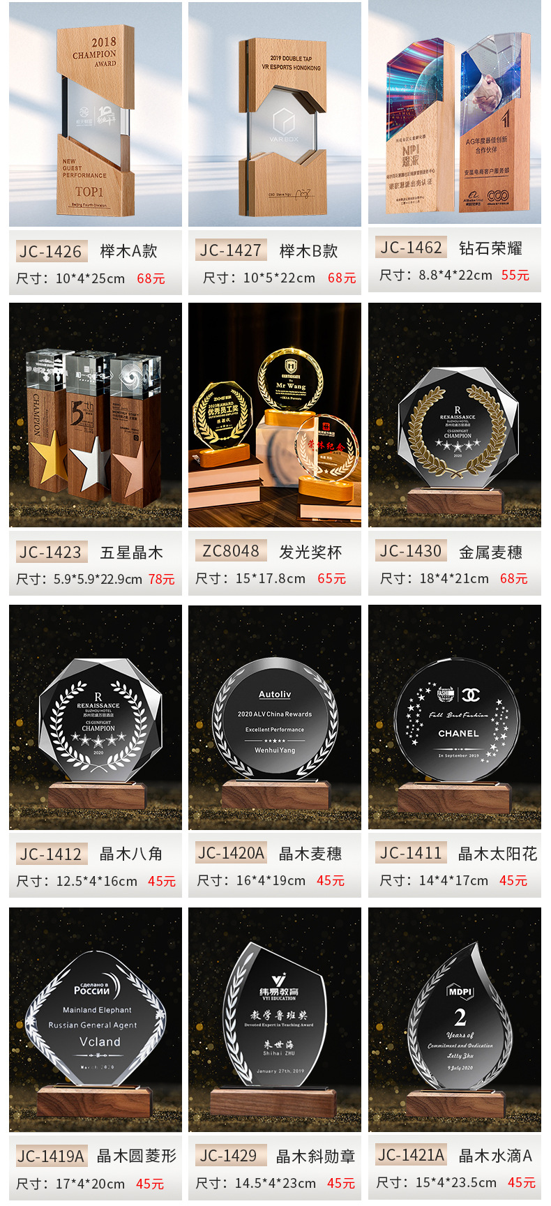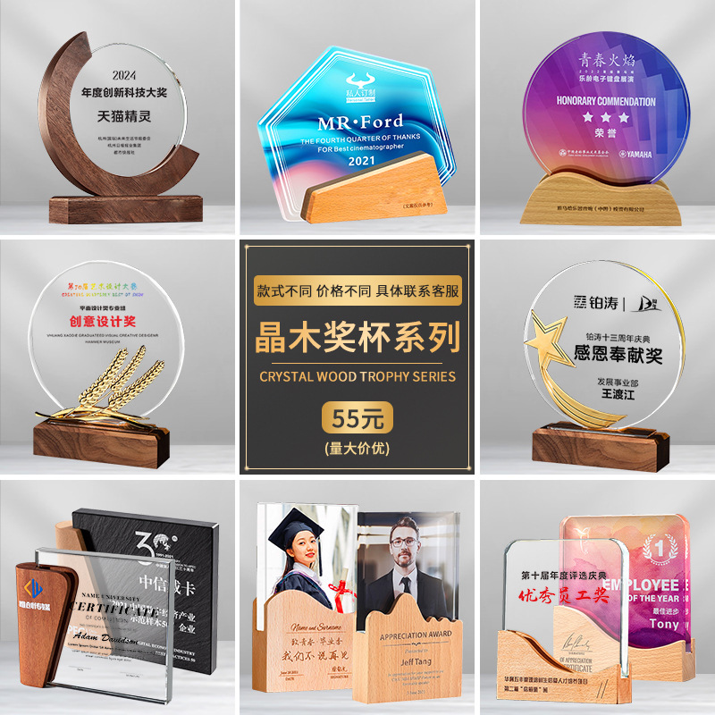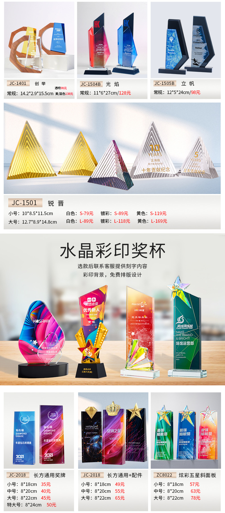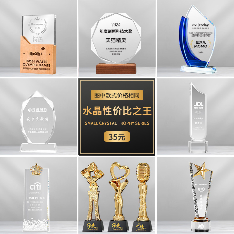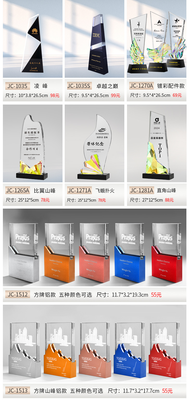 新款水晶奖杯定制免费刻字优秀员工颁奖公司年会奖杯订制奖牌厂家