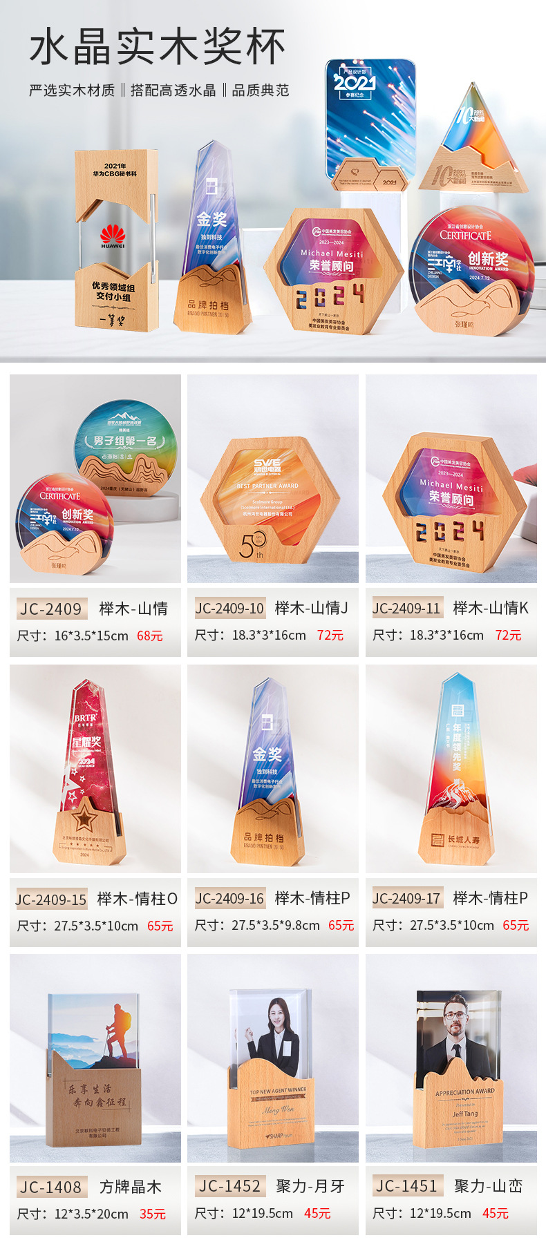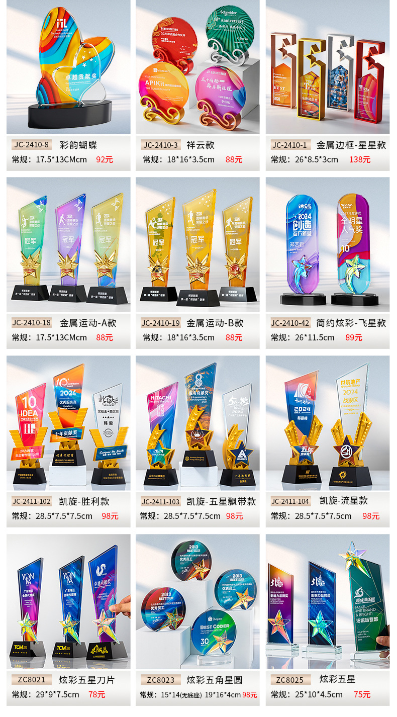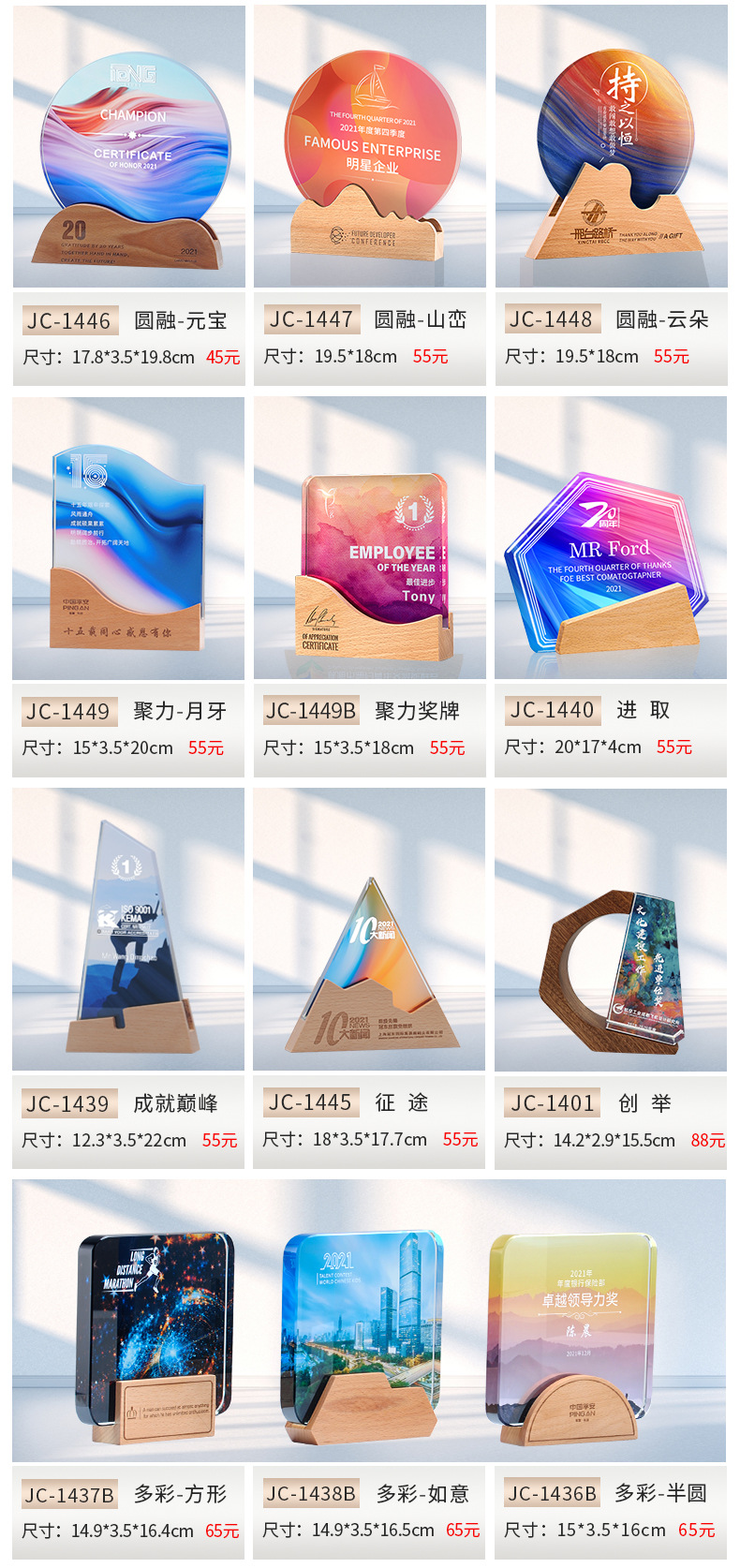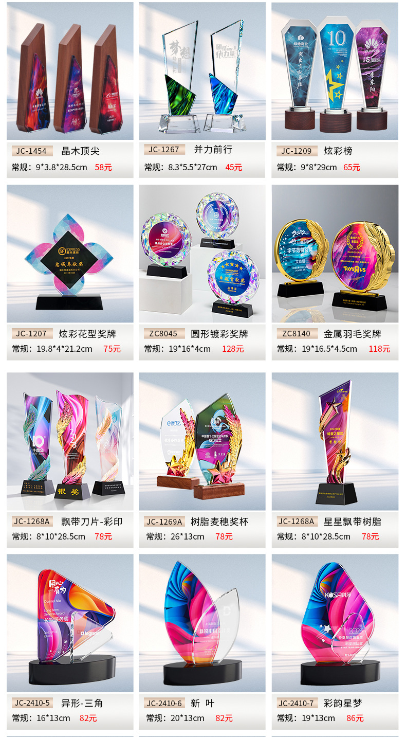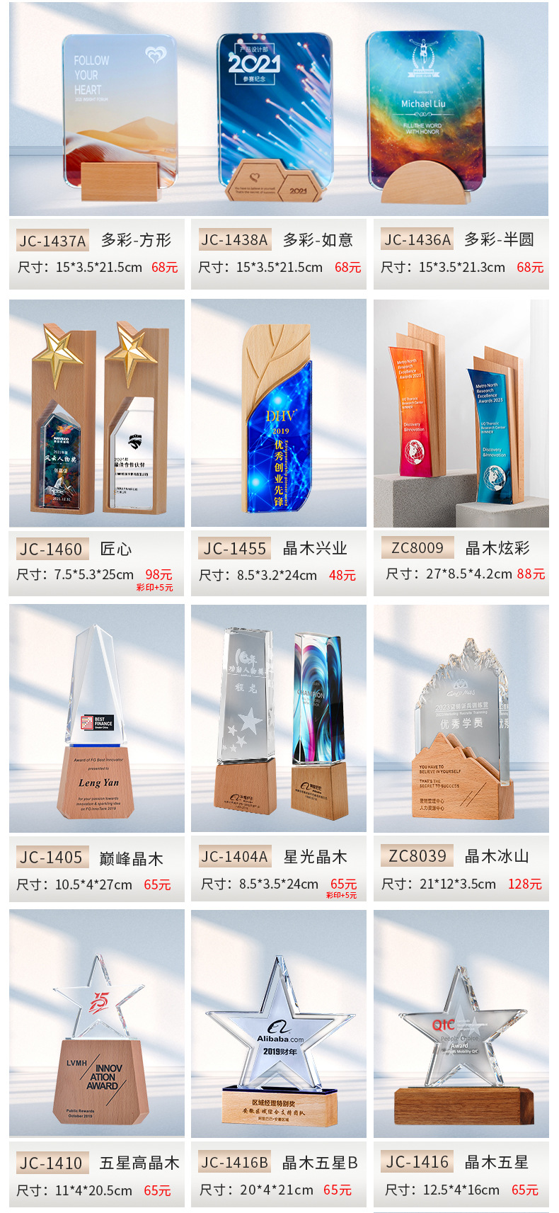 新款水晶奖杯定制免费刻字优秀员工颁奖公司年会奖杯订制奖牌厂家
