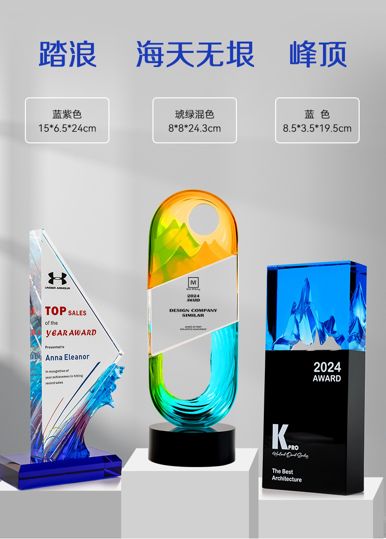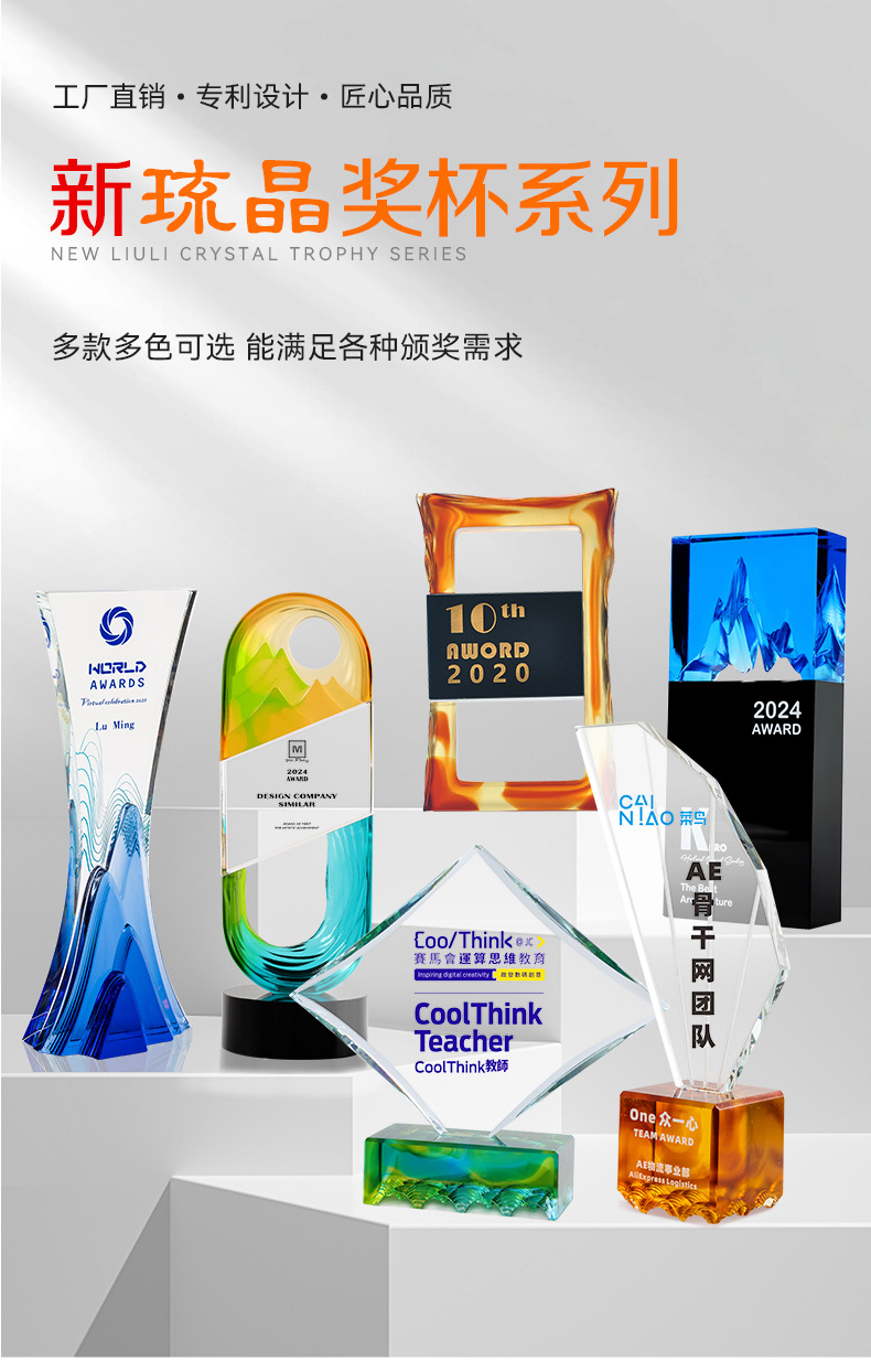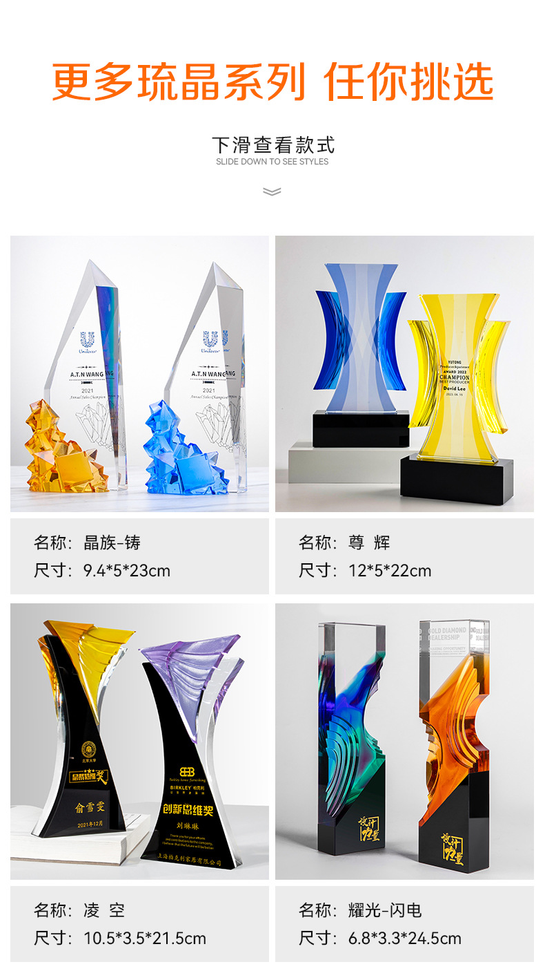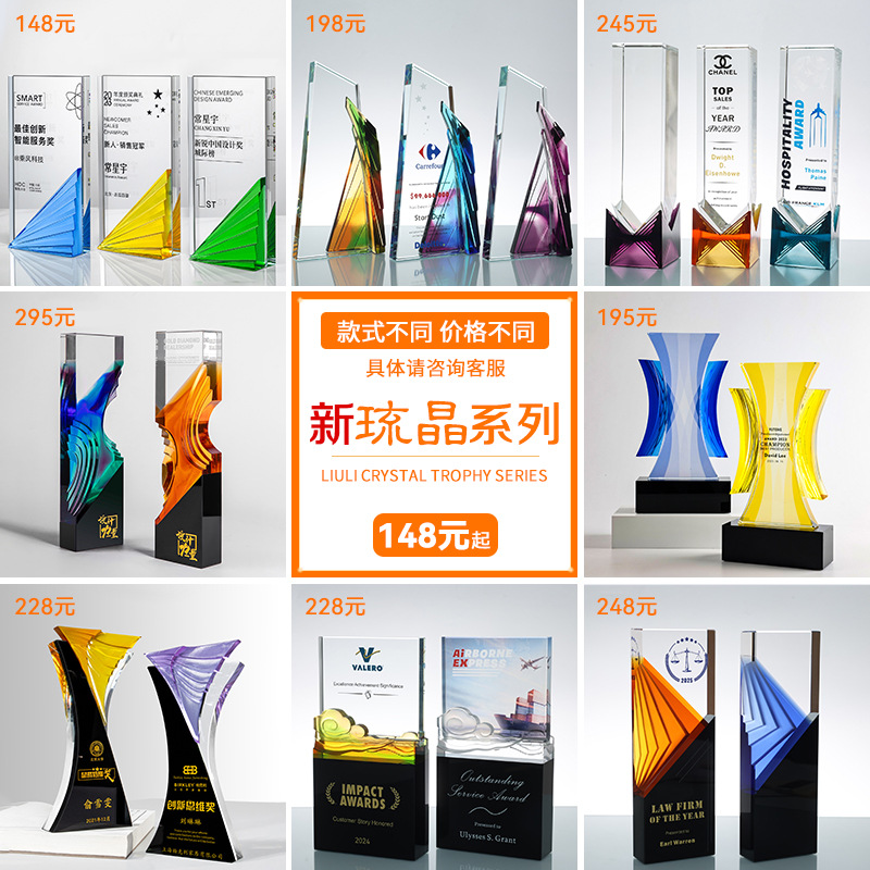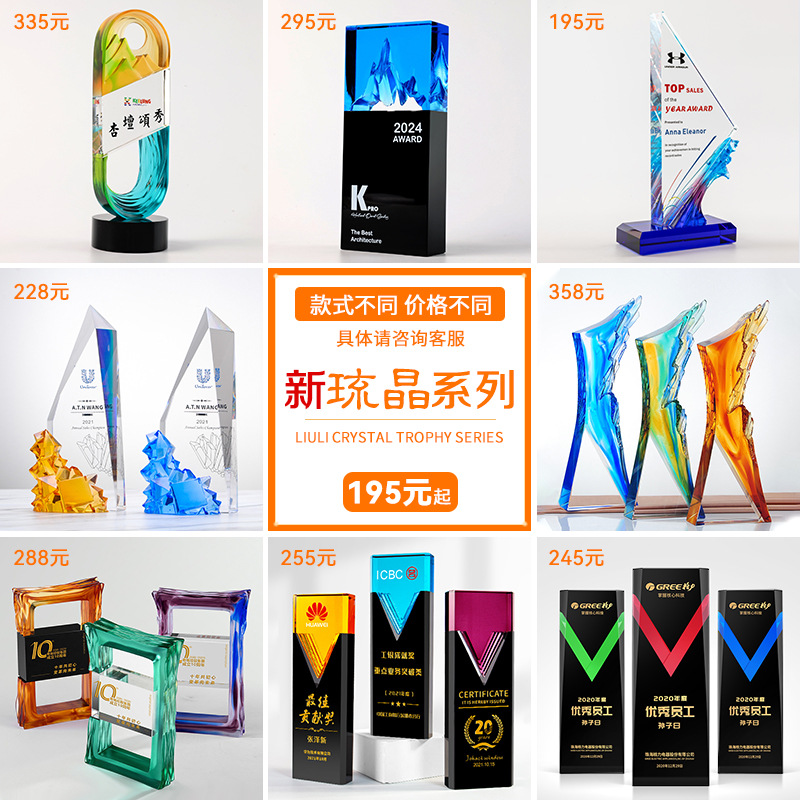 水晶琉璃奖杯定制定做高档大气企业年度优秀员工颁奖纪念订制订做