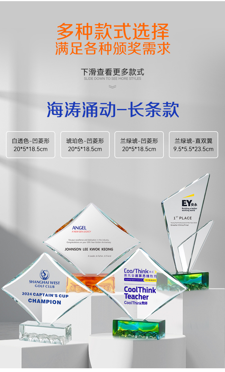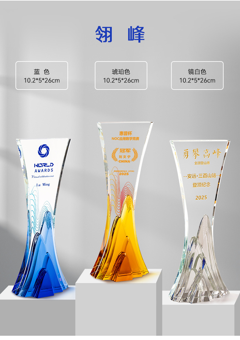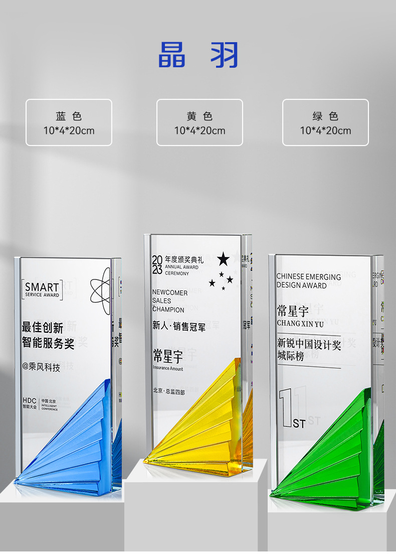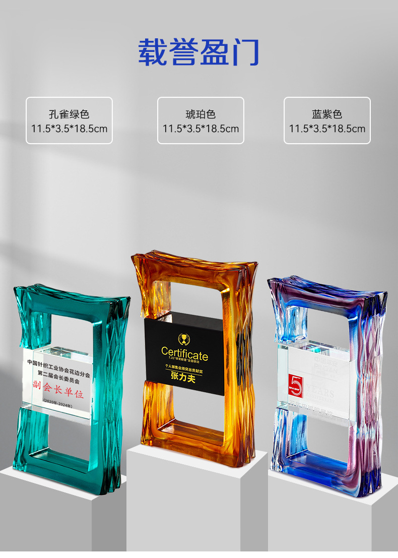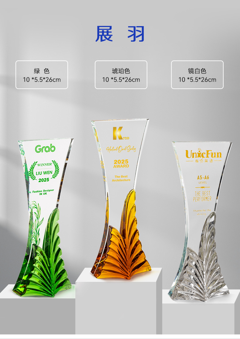 水晶琉璃奖杯定制定做高档大气企业年度优秀员工颁奖纪念订制订做